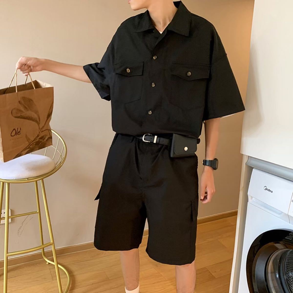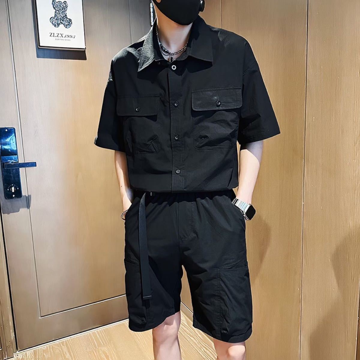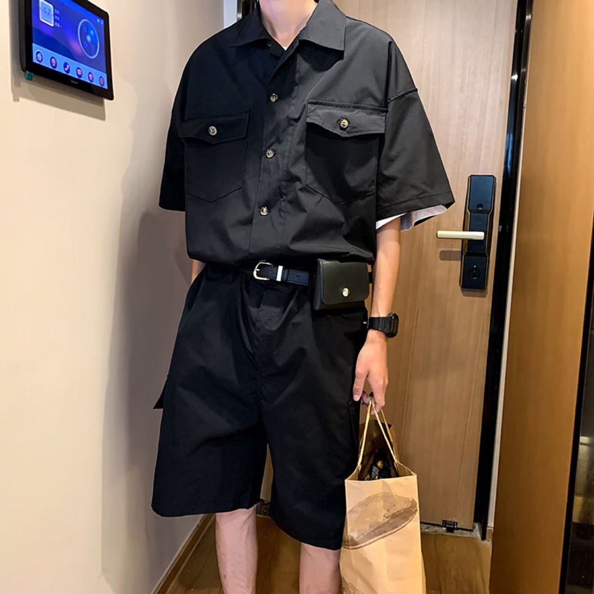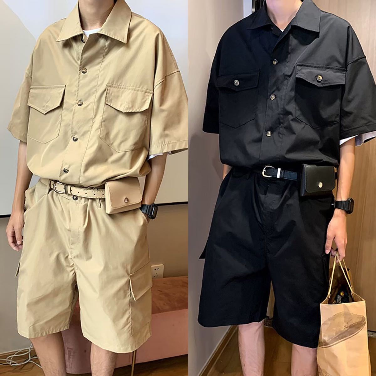 セットアップ つなぎ 作業着 サロペット オーバーオール オールインワン アウトドア 部屋着 ポーチ 半袖 短パン