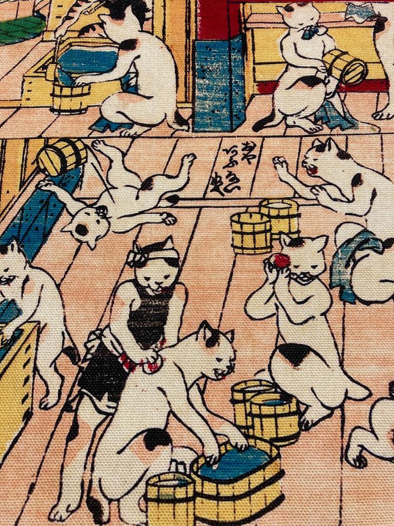 歌川芳藤の 浮世絵 ねこの湯を8号帆布にプリントしました。