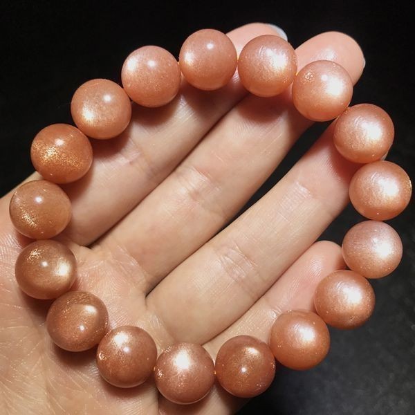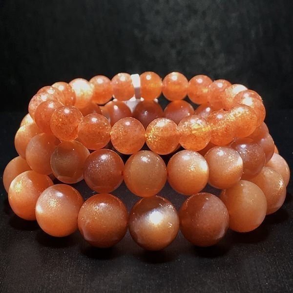 [EasternStar] 海外発送 オレンジ サンストーン ヘリオライト 日長石 太陽の石 特選品 玉サイズ13mm 腕回り約16cm