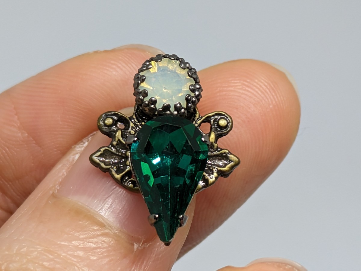 アンティーク風 ピアス カラーストーン アクセサリーハンドメイド材料 中古 緑 白