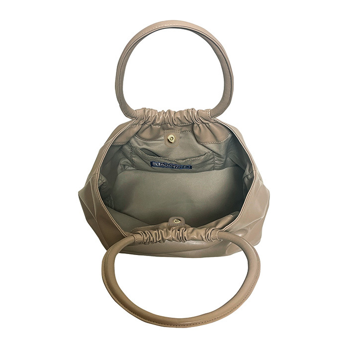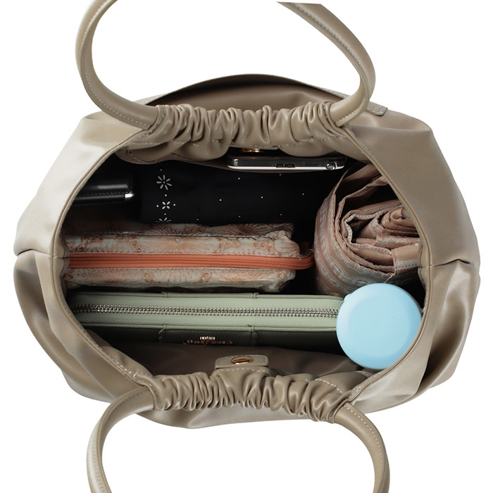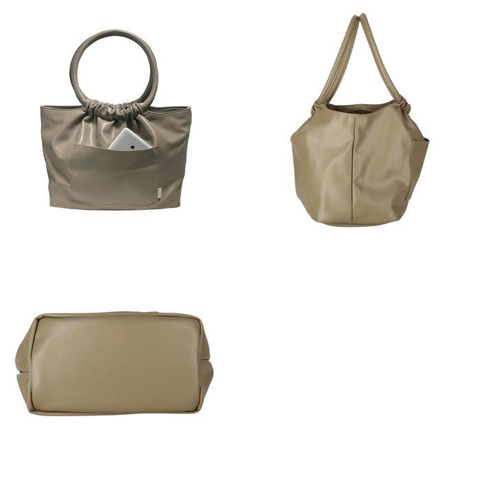 | 商品説明 | ・・【ファッションのポイントに】 ・立体感があり丸みのある柔らかいフォルム。丸形の持ち手と口元ギャザーがおしゃれ感をアップ。 ・【上品でしっかりした雰囲気のエコレザー】 ・汚れや水滴なども拭き取りやすく機能的です。かわいいものの中にも、大人っぽい仕上がりを意識しています。 ・【見た目以上のたっぷり容量】 ・お財布、ボトル、A5ノート、ポーチなどらくらく収納!2つの内ポケット付きで、バッグの中身をきれいに整理整頓。 ・大きく開く口元で、モノの出し入れがしやすく、中身もパッと確認できます。 ・背面のルーポケットには、取り出す頻度の高いスマホや消臭グッズを入れておくのに便利です。 |