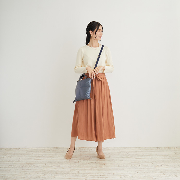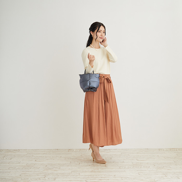 商品説明 | ・・スタイリッシュなきれいめキルティング。羽毛のインナーで仕上げた軽~いトート。 ・お気に入りのワードローブにあわせてオシャレを楽しむ!もっと出かけしたくなるあなたに似合うトートです。 ・使いやすい触り心地。大人っぽさのある光沢感&高級感のあるつくりです。 ・両サイドのルーポケットは中で繋がった一つのポケット。左右どちら側からもスマートに中身を出し入れできる優れもの。また、寒い日には、両手を入れれば、ほんのり暖かな「ハンドウォーマー」ポケットに! ・【スマホなどの収納に便利な内ポケット】 ・頻繁に使う小物類もすっきり収納、迷子になりがちな小物も迷わず取り出せます。 ・【必需品がちゃんと収まる】 ・・「ちょっとそこまで…」から「旅のお供に…」まで。 ・メインとしても、サブとしても、必要最低限のものがすっきり収まるサイズ。ファスナー開閉で、大きく開き中身が見やすく出し入れスムーズ。 ・【トート&ショルダーの2way仕様】 ・持ち運びに便利な手持ちハンドルと長さ調整が可能なショルダー。肩掛け、斜め掛けの両方でお使いいただけます。 ・【カタチが変わる!】 ・荷物の大きさや好みに合わせてカタチが変えられます。底のボタンを留めれば、自立するトートに大変身。フラットトートとしても、舟形トートーとしても。 |