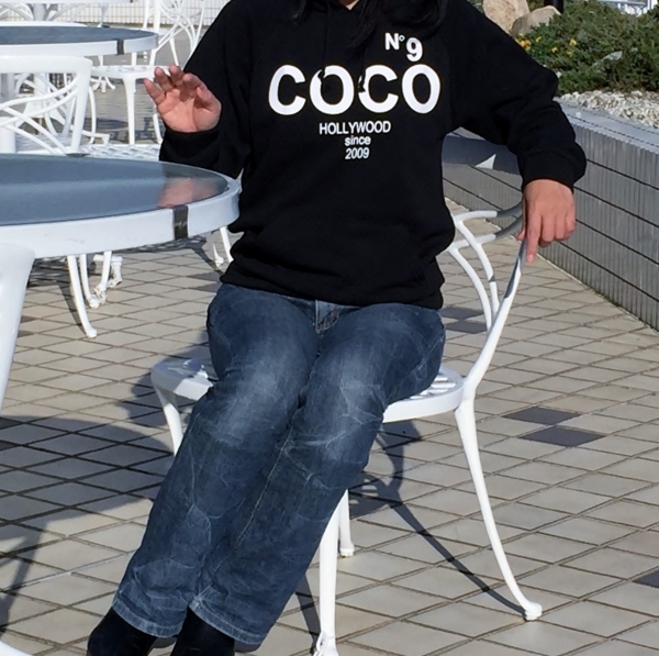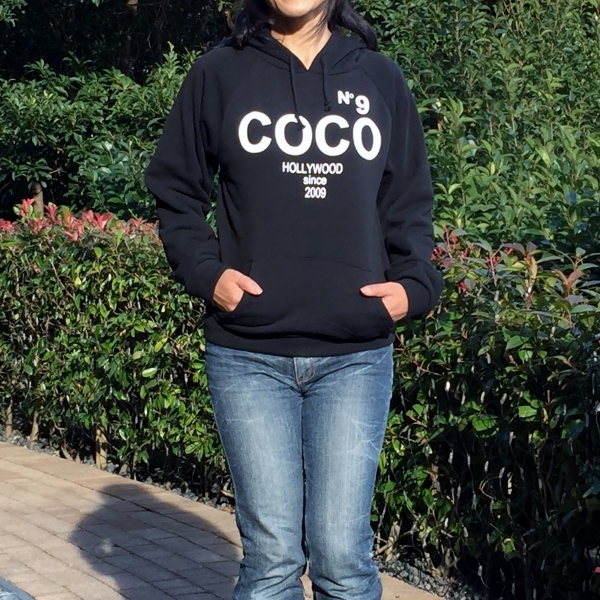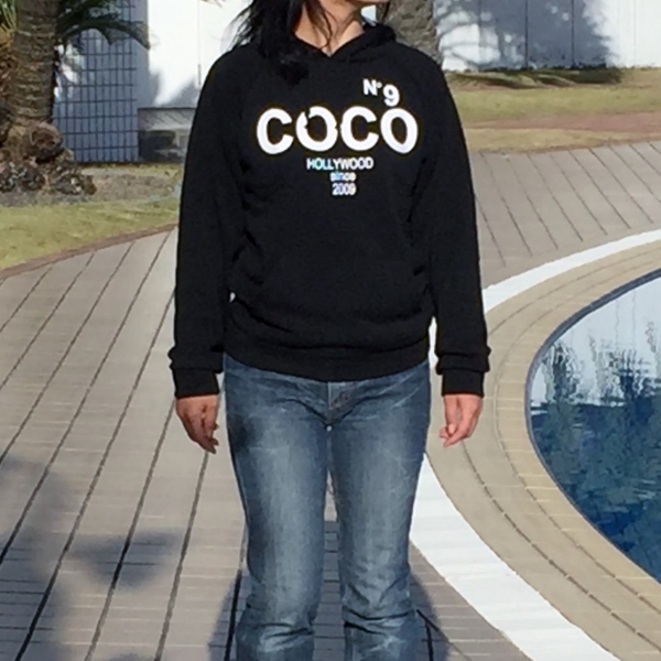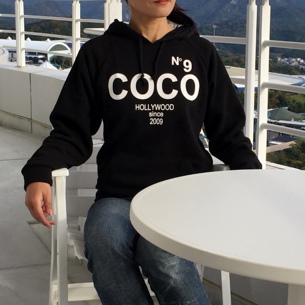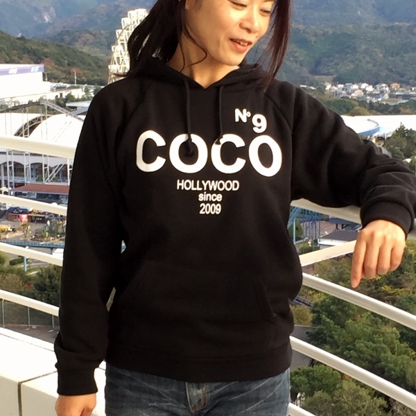 レディース COCO NO9 HOLLYWOOD ロゴ 裏起毛パーカー フリーサイズ ブラック