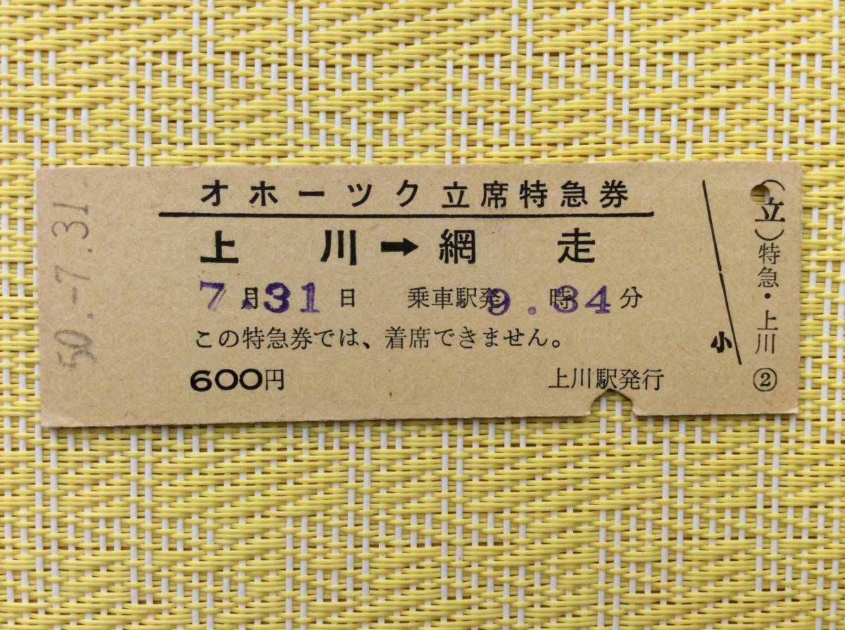 国鉄 オホーツク立席特急券 上川→網走 昭和50年
