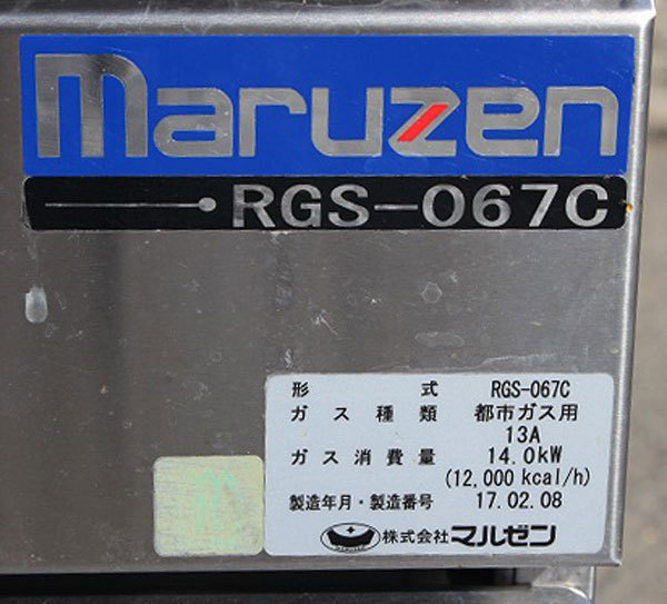 wz6087 マルゼン ローレンジ スープレンジ RGS-067C 都市ガス用 中古 2017年製 横幅600mm 厨房 飲食店 業務用 コンロ |