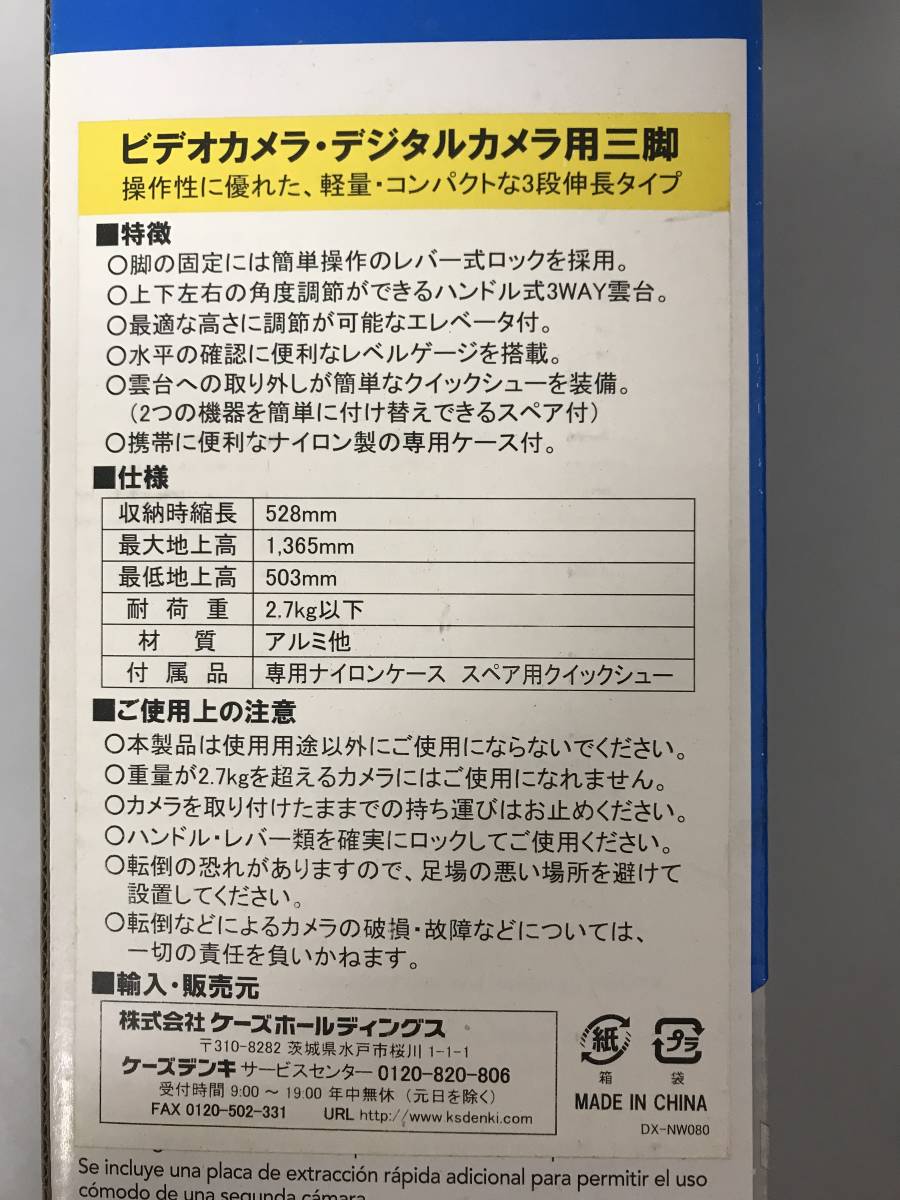| 商品説明 | ご覧頂きありがとうございます。 ビデオカメラ・デジタルカメラ用 三脚 軽量 コンパクト 3段伸長タイプ ナイロンケース付きでございます。 未使用品ですが開封した自宅保管品です。 細かいキズ 汚れがあります。 神経質な方のご入札はご遠慮ください。 画像のみのお品です。 箱に伝票はります。お願い致します。 | |