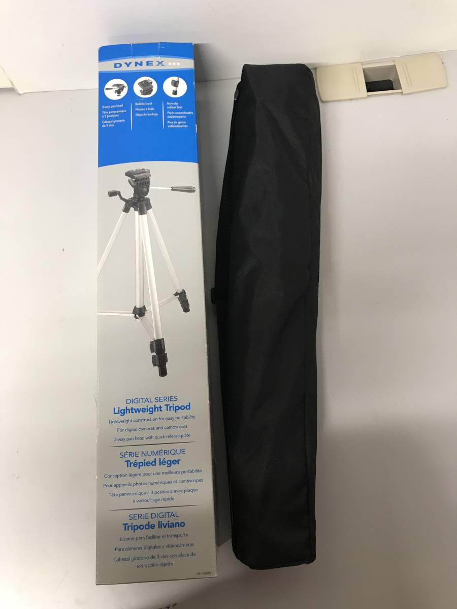 | DYNEX ビデオカメラ・デジタルカメラ用 三脚 軽量 コンパクト 3段伸長タイプ ナイロンケース付き | ||