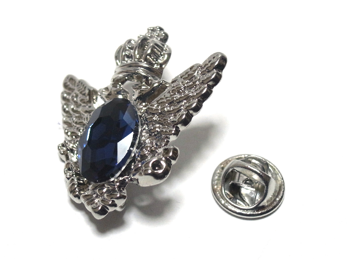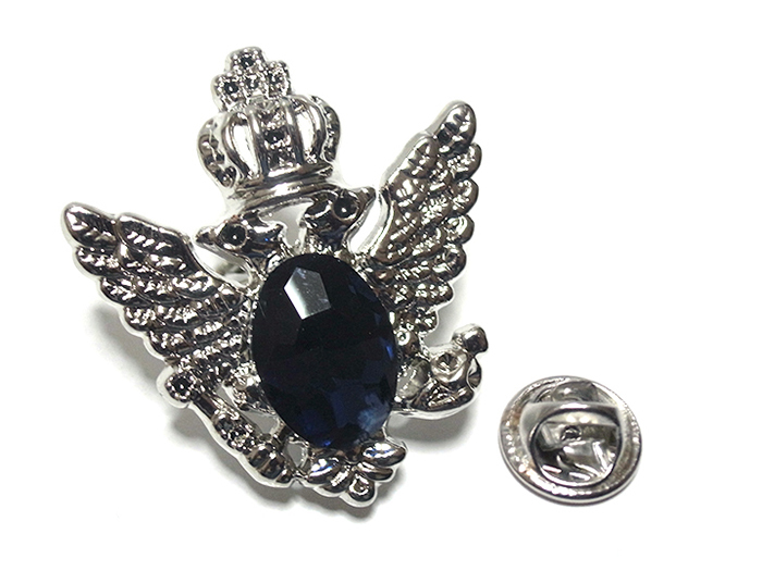 ラペルピン★ピンズ 双頭の鷲 王冠 クラウン ラインストーン ブルー pin-1213