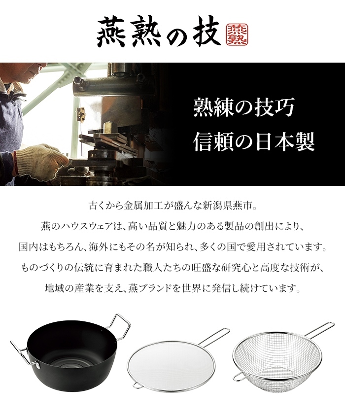 日本製 国産 天ぷら鍋セット 揚げ物鍋 油はねガード 手付きフライヤー IH対応 ガス火対応 オール熱源 天ぷら用鍋 調理用品 大容量 両手付き 深型 鉄製 キッチン用品 日本製 国産 |