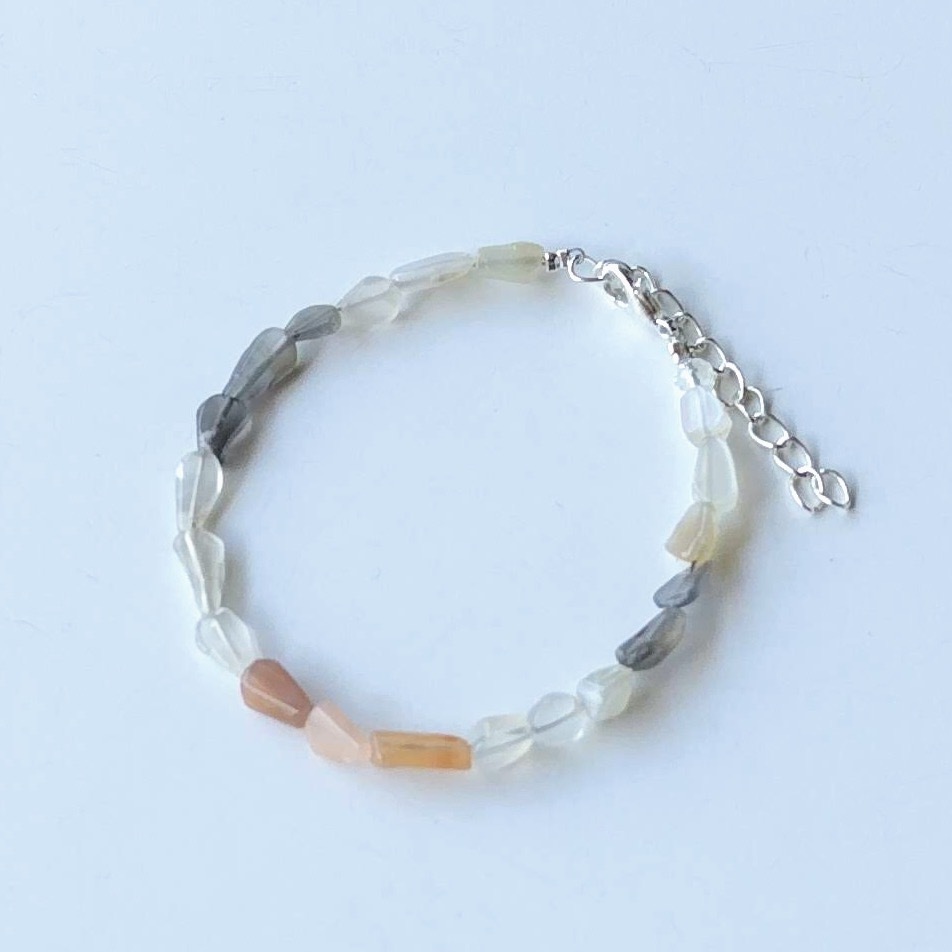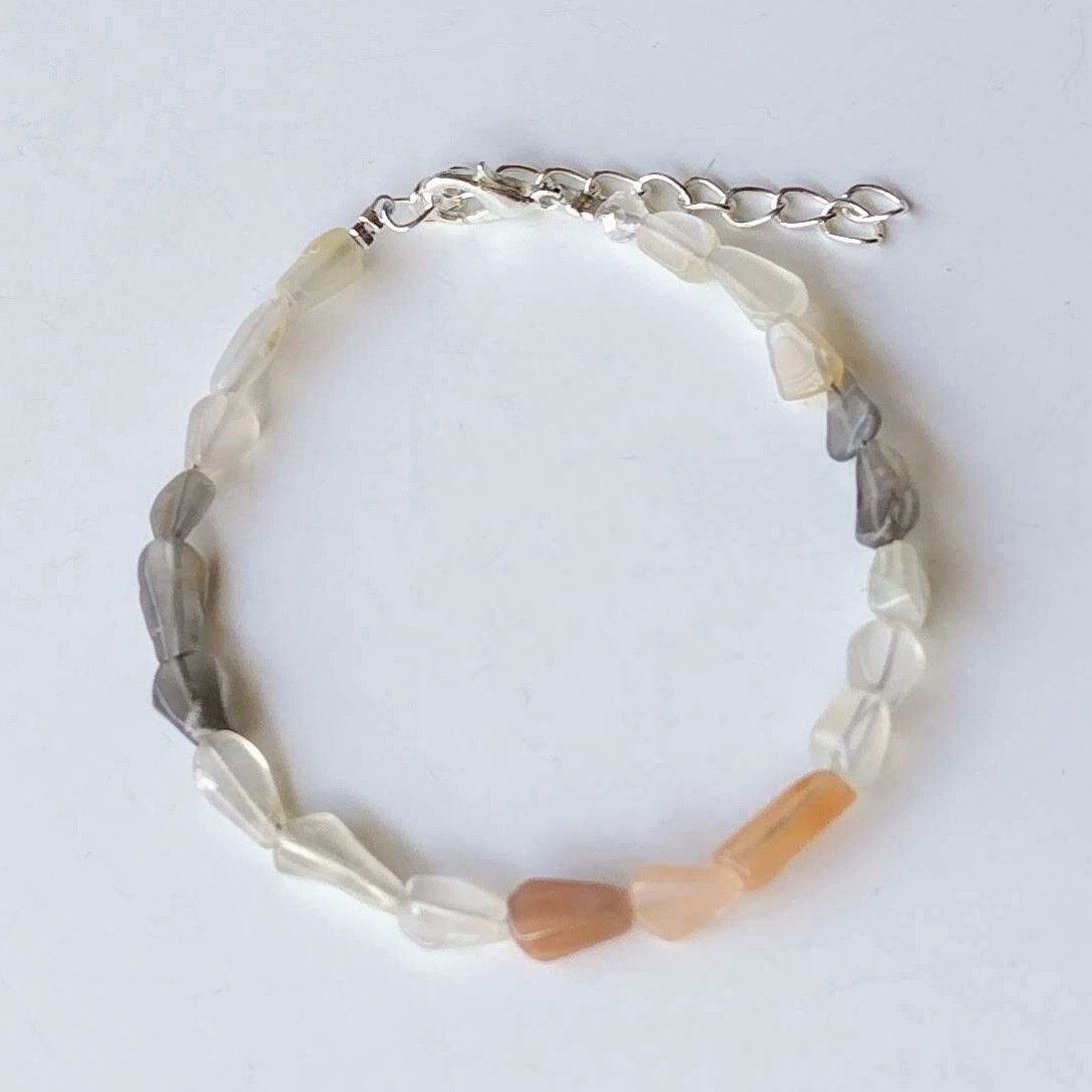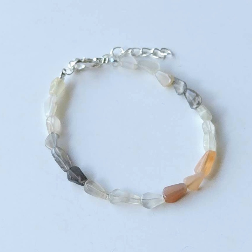 天然石   マルチカラームーンストーン(ホワイト、グレー、オレンジ)フラットドロップ