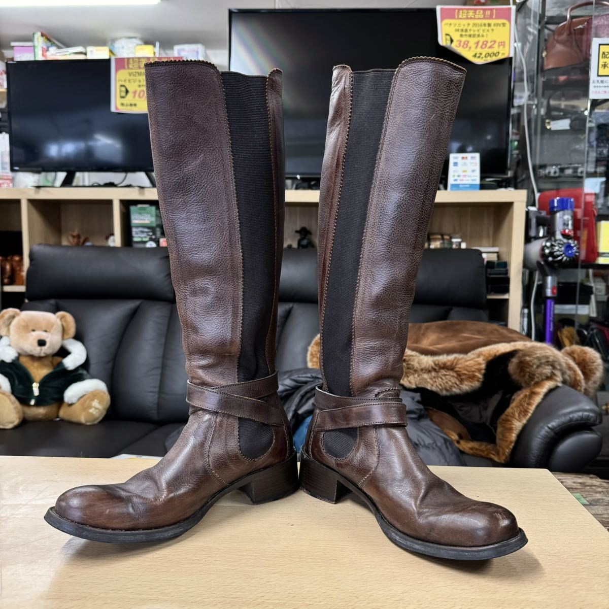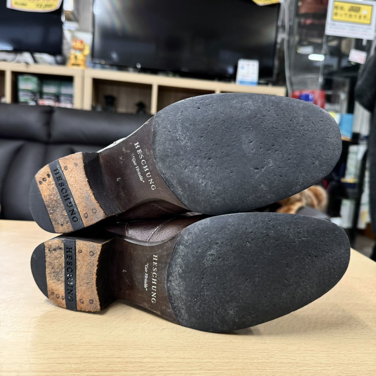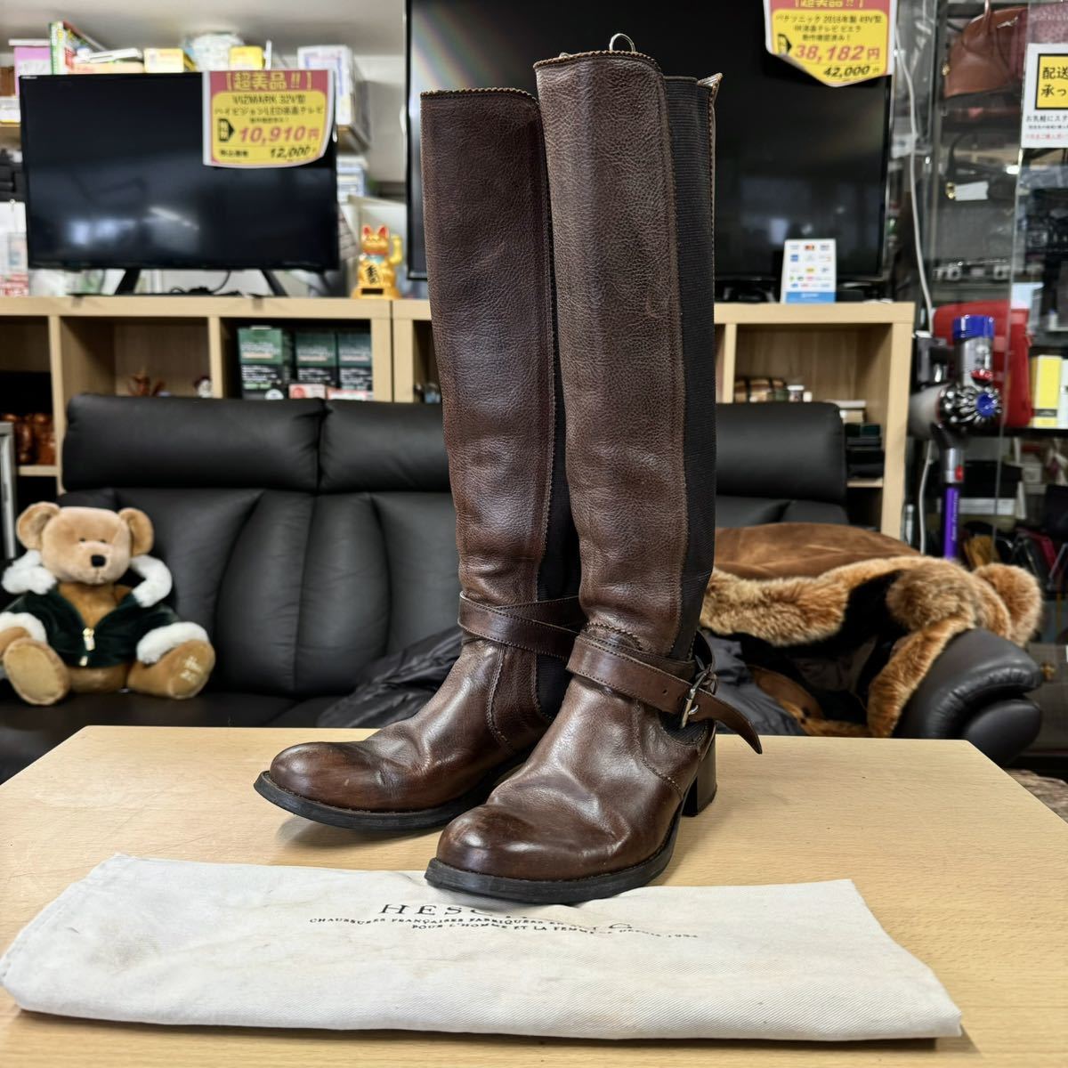 【美品】HESCHUNG★エシュン★ロングブーツ★レディース★4インチ(23.0cm)★本革製ブラウン★レザー★フランス製★ブーツ★茶革
