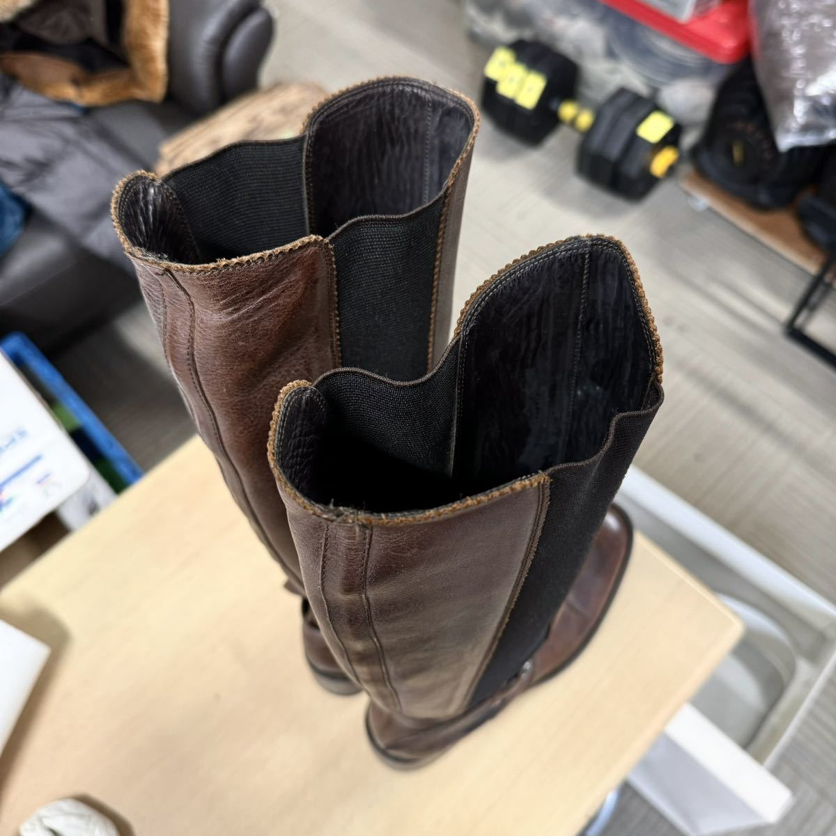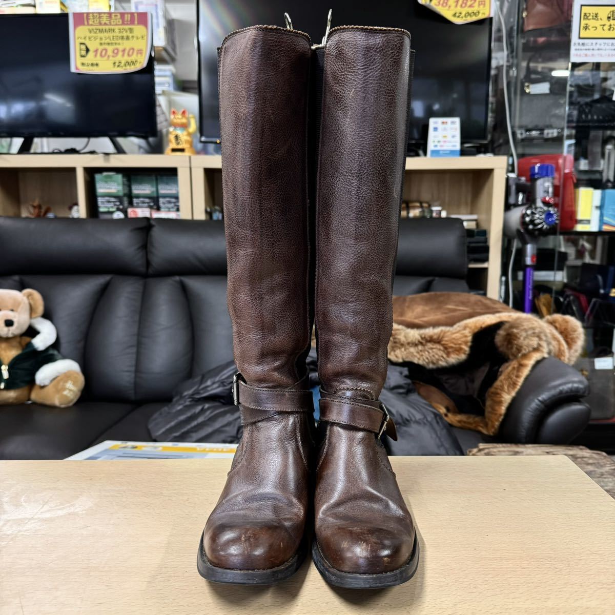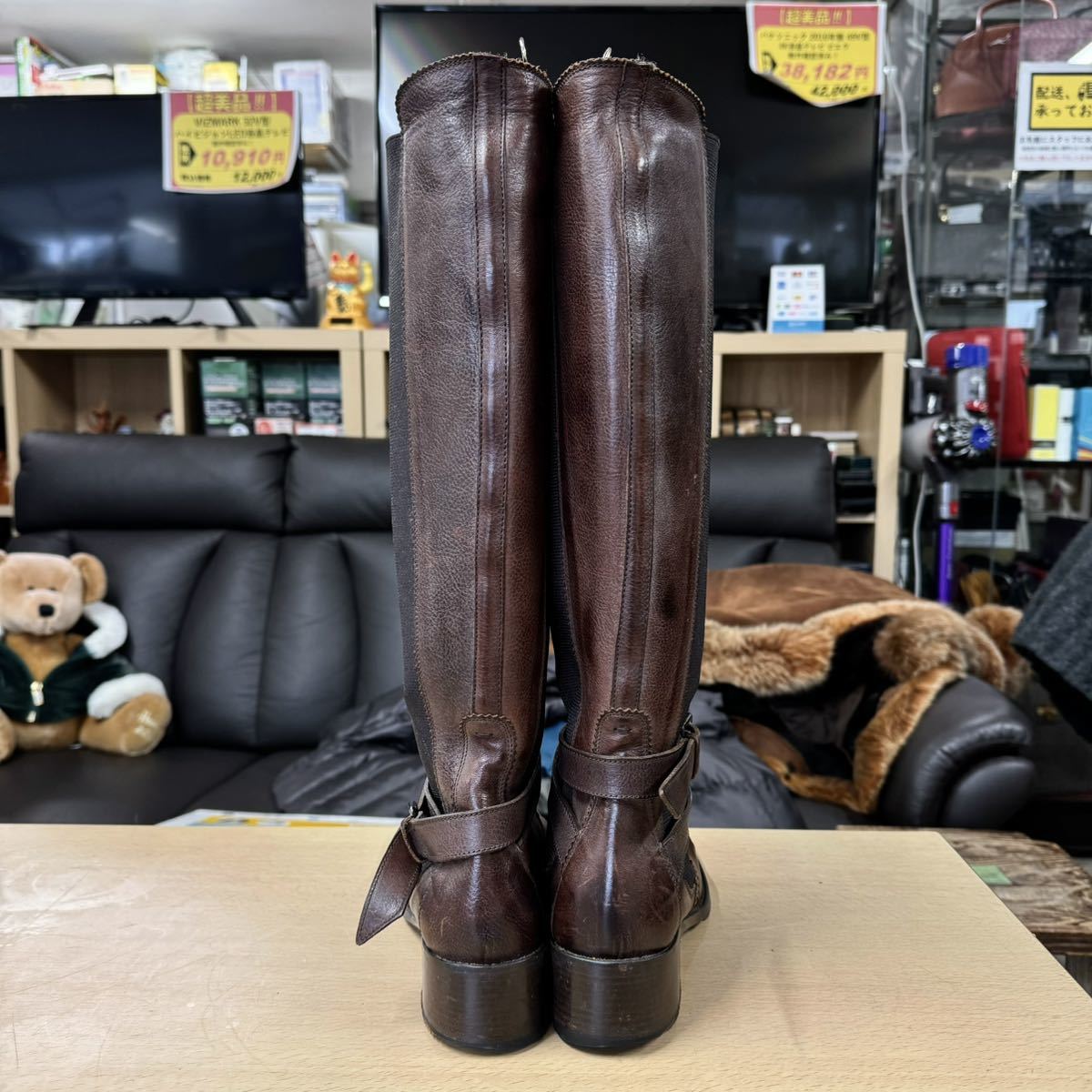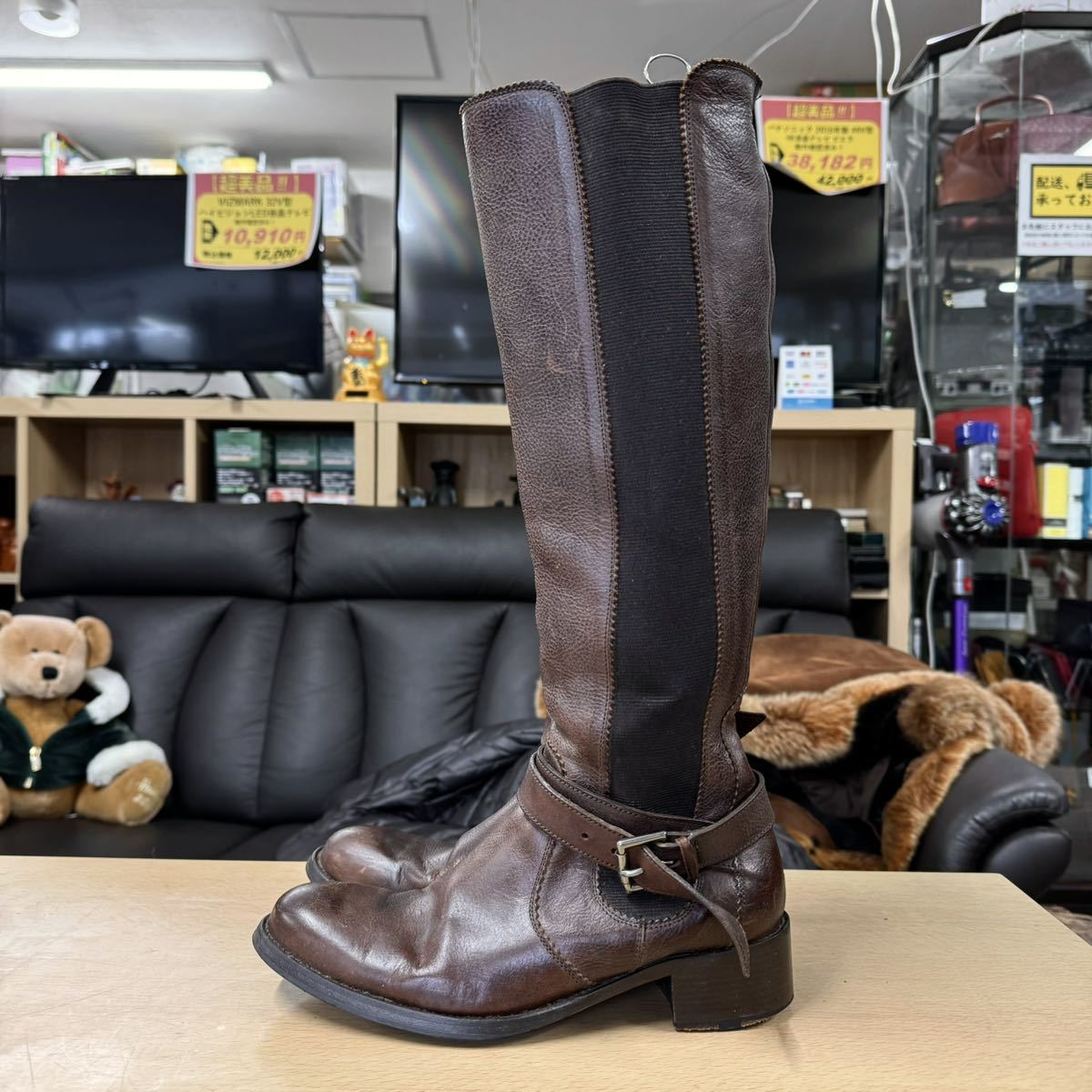 【美品】HESCHUNG★エシュン★ロングブーツ★レディース★4インチ(23.0cm)★本革製ブラウン★レザー★フランス製★ブーツ★茶革
