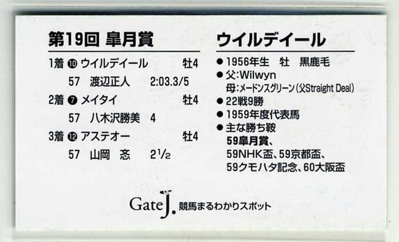 | ★非売品 ウイルデイール 第19回皐月賞 単勝馬券型 カード JRA Gate J.名馬カード 渡辺正人 写真 画像 競馬カード 即決 | |