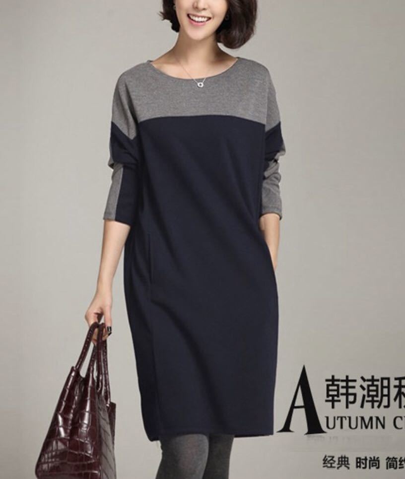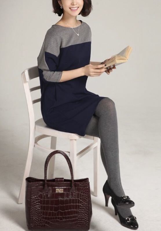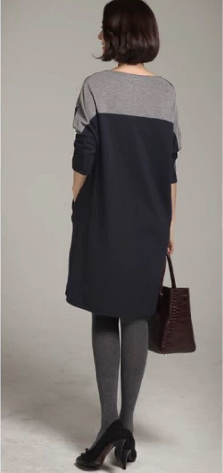 ワンピース レディース 長袖 チュニック 春秋 冬 チュニックワンピース バイカラー モード系 膝丈ワンピース きれいめ 体型カバー ゆったり ひざ丈 お洒落 上品