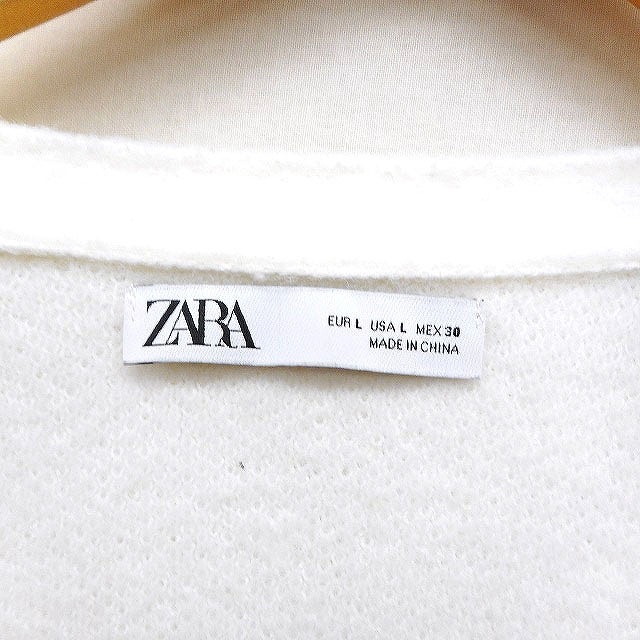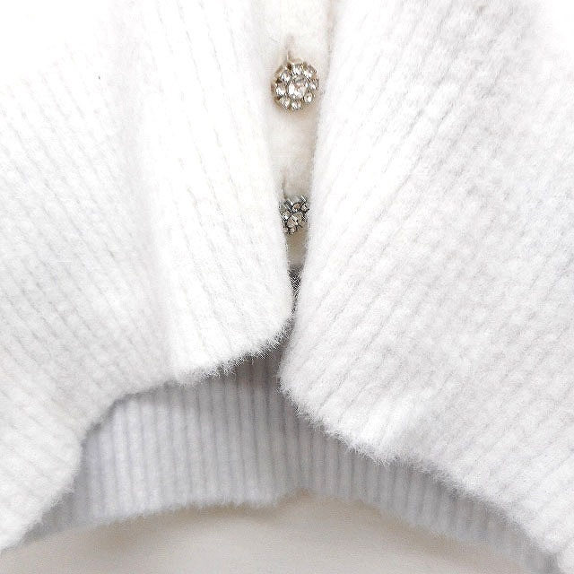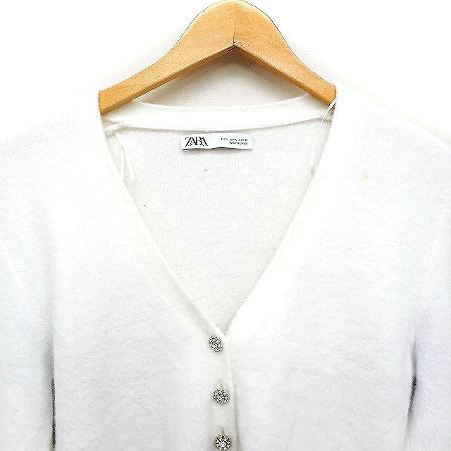 ザラ ZARA ニット カーディガン Vネック ビジューボタン ふわふわ L ホワイト 白 /FT13 レディース