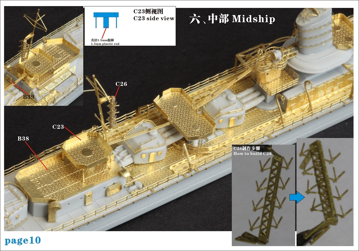 専用ディテールアップパーツ、金属製パーツ、細部を精密再現しました 金属製エッチングパーツ x5枚 金属製砲身 x6枚 |