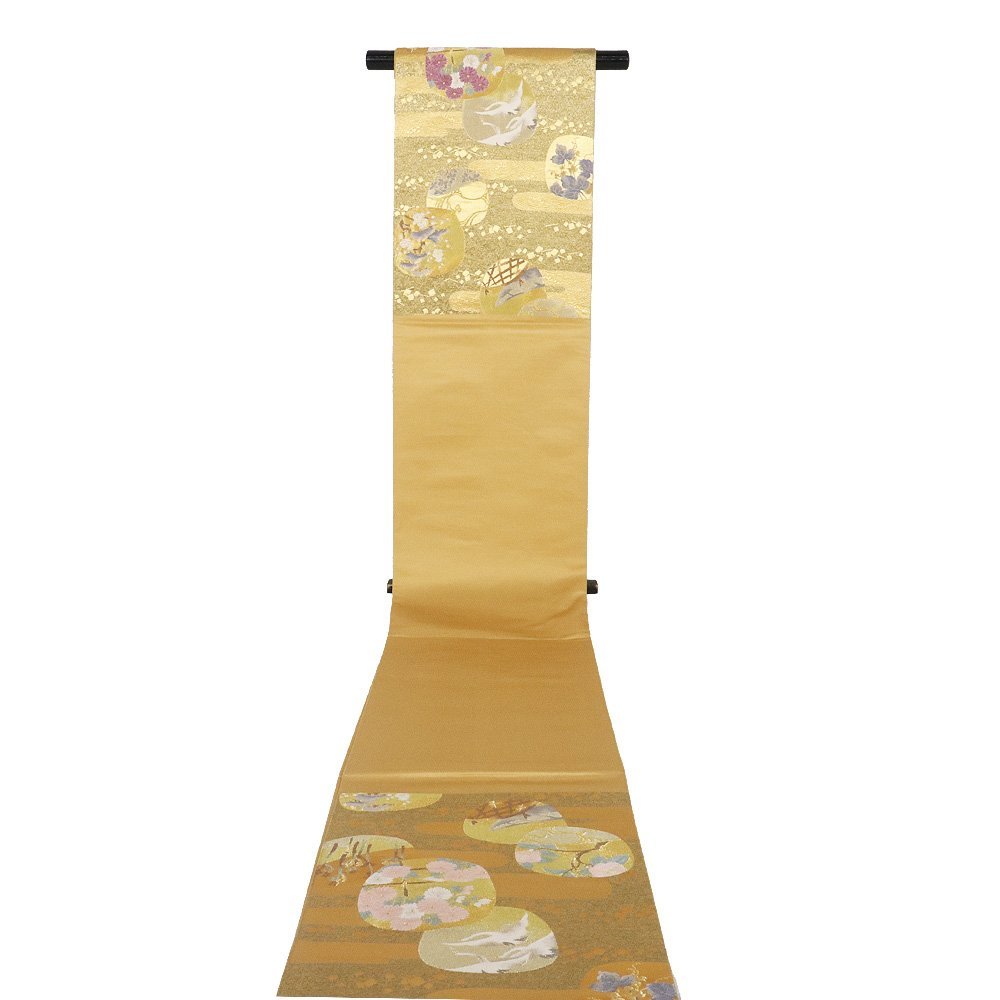 西陣認証ついていません。 留袖・付下げ・訪問着用にいかがです。 一度使用品。六通 芯入り仕立て上がり品。 すっきりとした配色で現代の空間に映えるもの。 日本の古典文様をはじめ、長い歴史で培った高い技術に 今様の美しい意匠が光ります。 とても上品な帯です。 仕立て上がり。 上品な仕上がりになっています。 生地の状態は良いと思います。 目立ったシミ汚れはないと思います。 美品です。 |