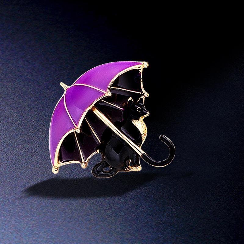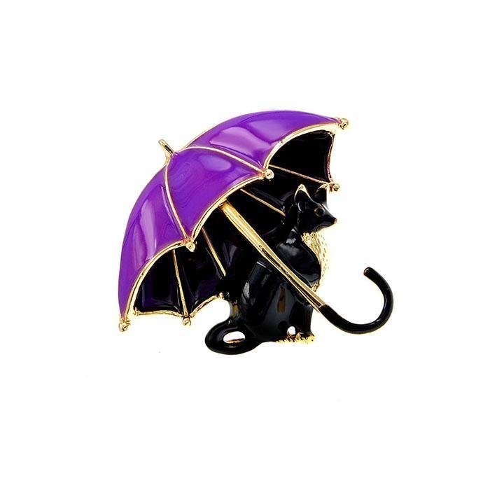 【動物】上品 紫傘&黒猫 2WAY ペンダントトップ兼ブローチ