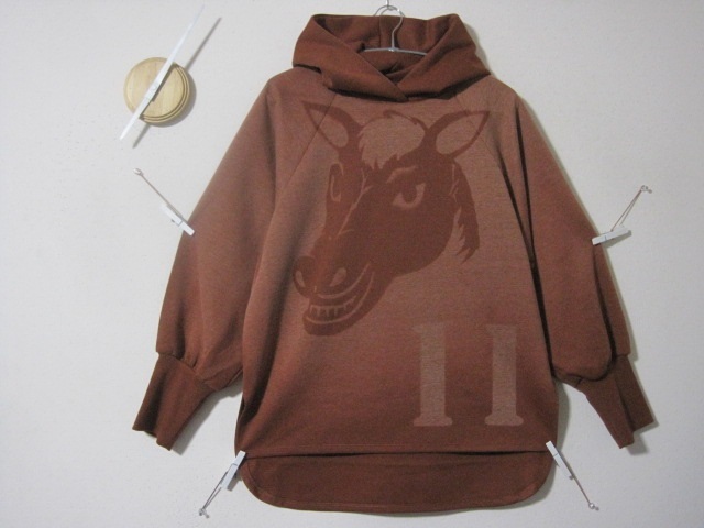 1点 美ライン パーカー オコリマスヨ!馬【11】テラコッタ  ポンチョ/ドルマン/スウェット/ストレッチ/プレゼント/ウマ女/ゲーム