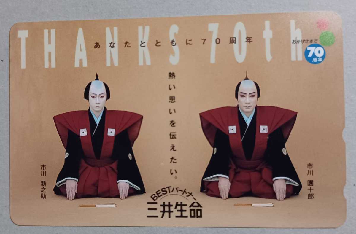 ●● 歌舞伎 市川團十郎 市川新之助 三井生命 70周年 未使用 テレカ