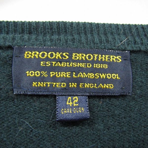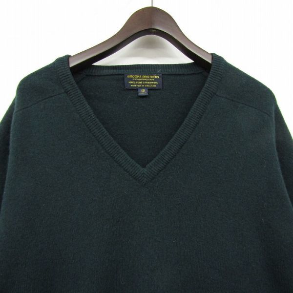 イングランド製 サイズ 42 BROOKS BROTHERS Vネック ニット セーター ラムウール グリーン ブルックス ブラザース 古着 ビンテージ 3N2903
