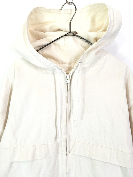 強度のあるコットンダック・裏地ナイロン・2ポケット・フード&ウエストにドローコード。