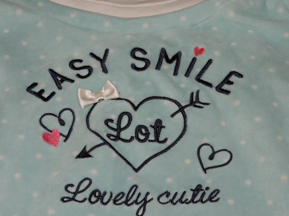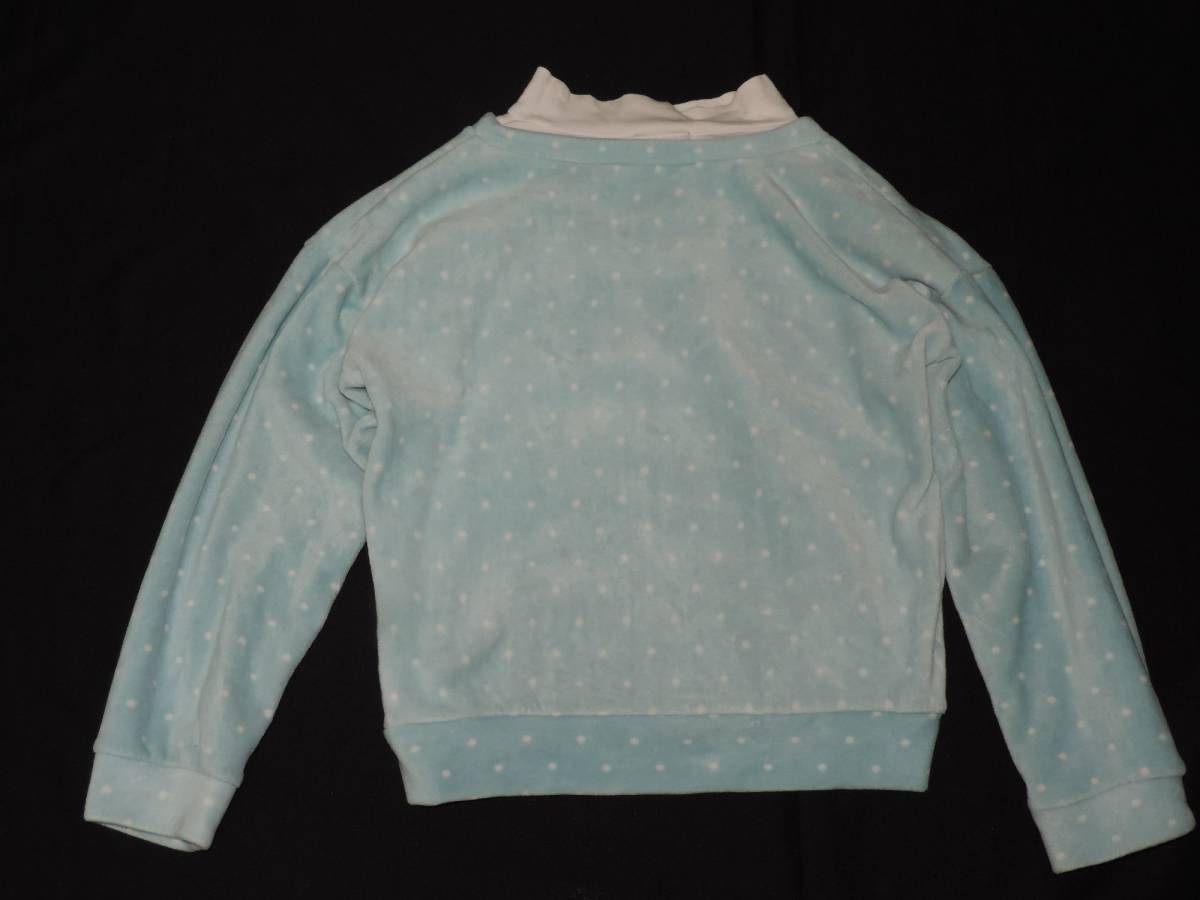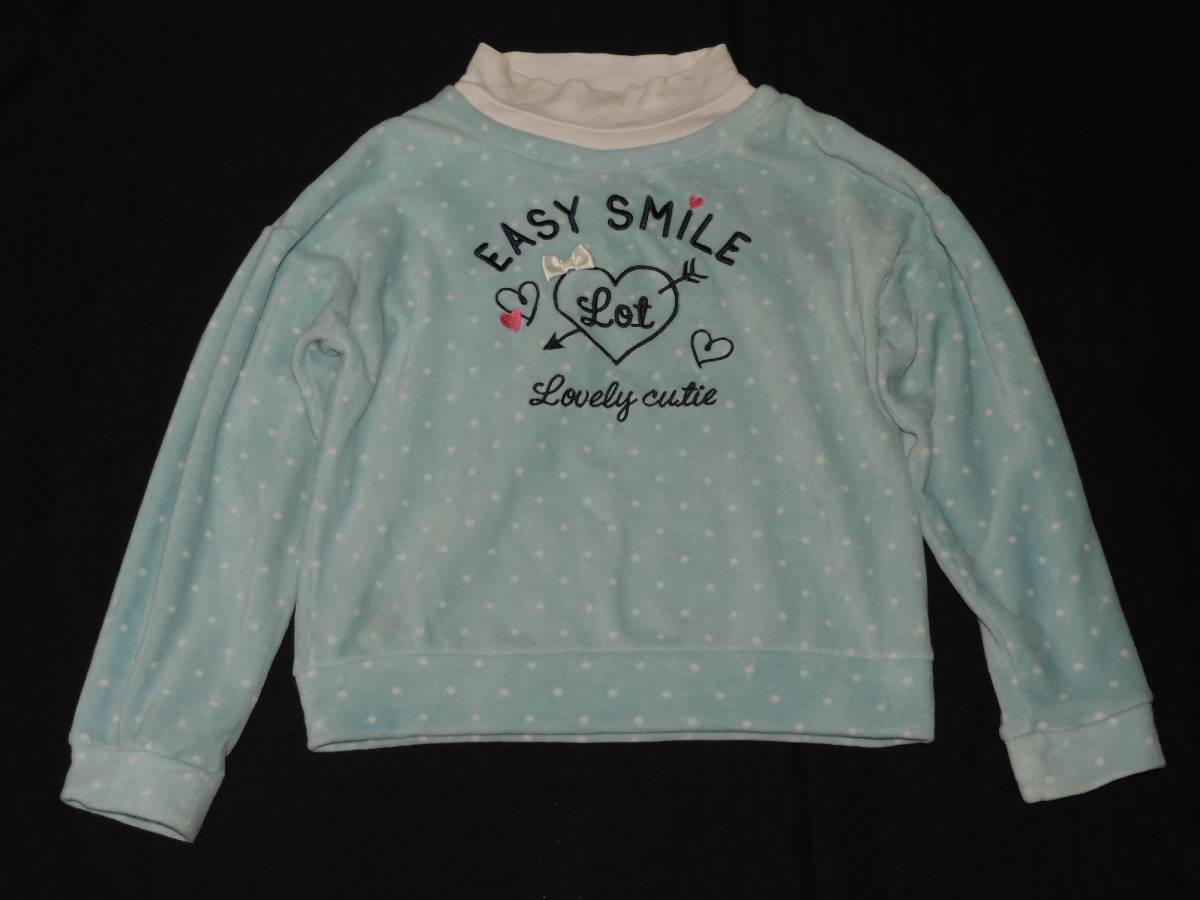 ☆英文字ハート刺しゅう水玉プリント水色系あったか素材ハイネック重ね着風長袖☆150センチ☆