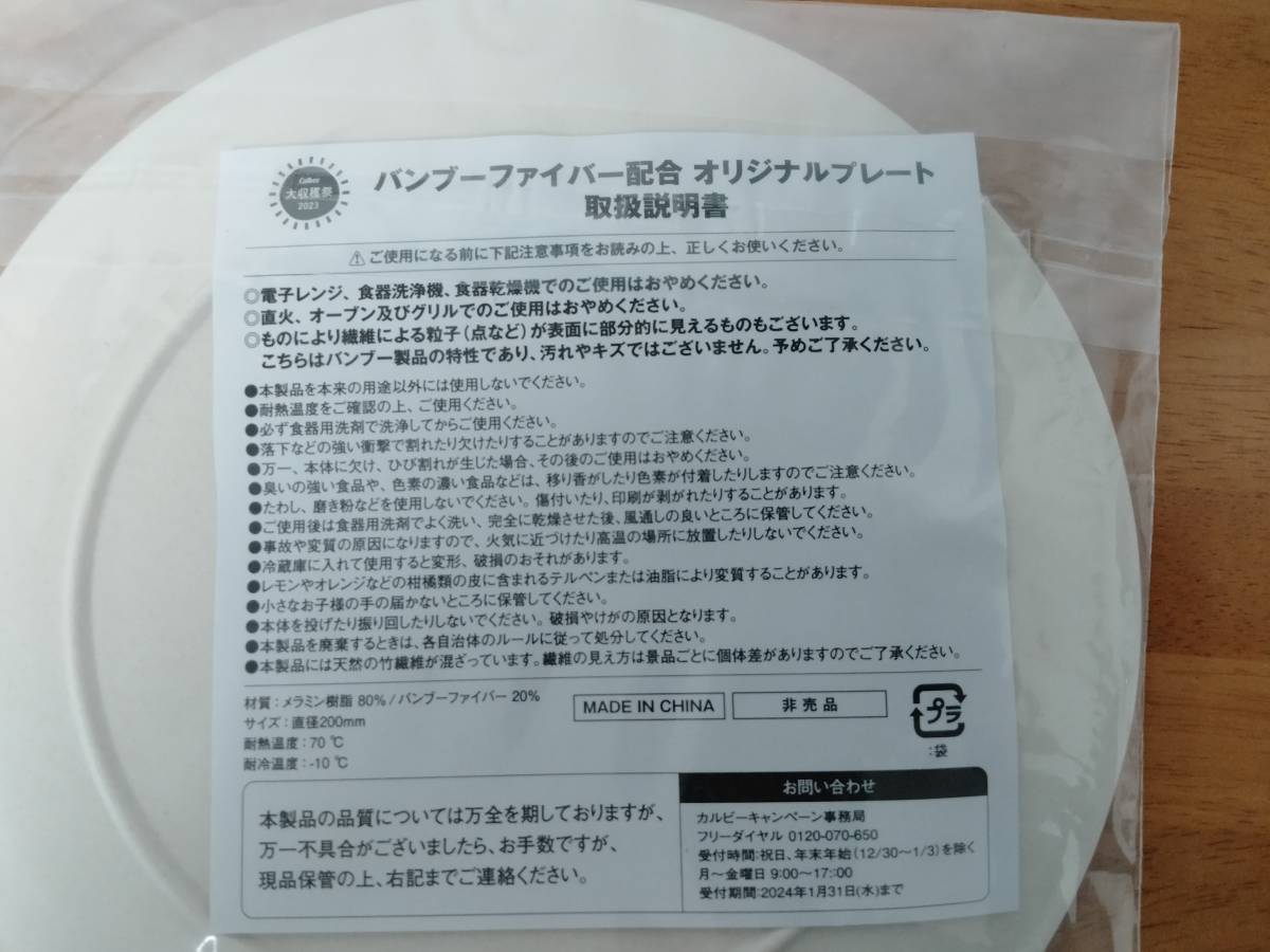 ・Calbee大収穫祭2023懸賞当選品 バンブーファイバー配合オリジナルプレート1枚、水色系です。