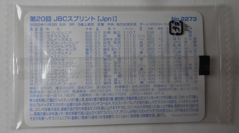 ◎まねき馬カード No.2273 第20回JBCスプリント(未開封)サブノジュニア