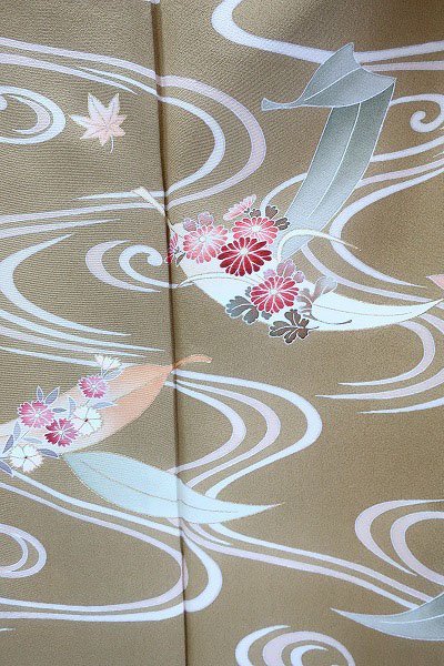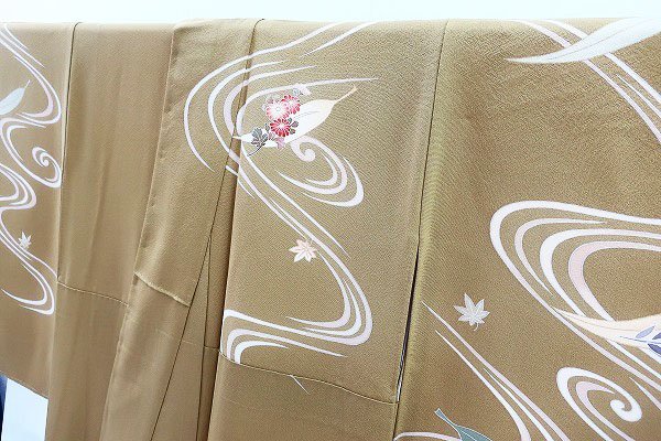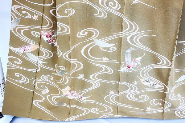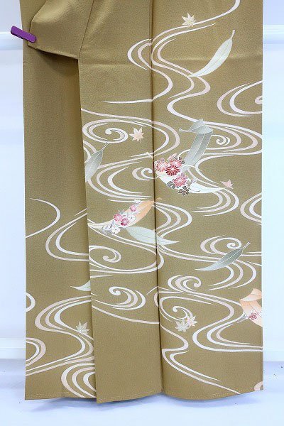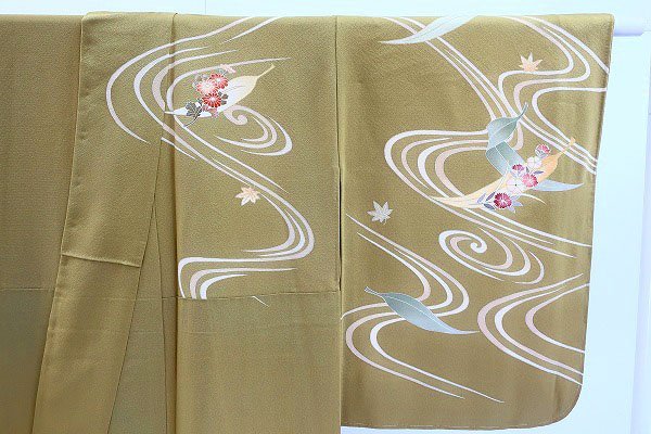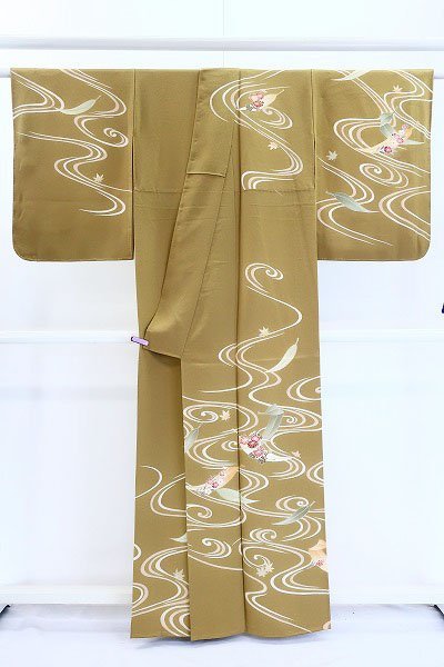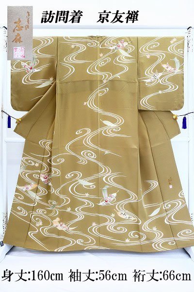 【送料無料】未使用品 訪問着 京友禅 金彩友禅 岩下志麻 流水紋 鶯色 身丈160cm 入学式 卒業式 お洒落 上品 正絹 仕立て上がり m-5445 |