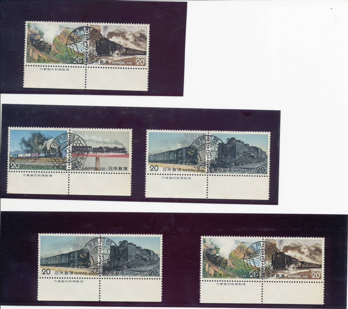 SLシリーズ 鉄道郵便印 東京門司間 銘版付ペア5組セット②