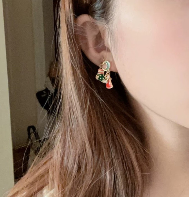 ●金属素材:真鍮、 金メッキ、ペイント。●イヤリング全長:約2.5cm。●重さ:2gX2。