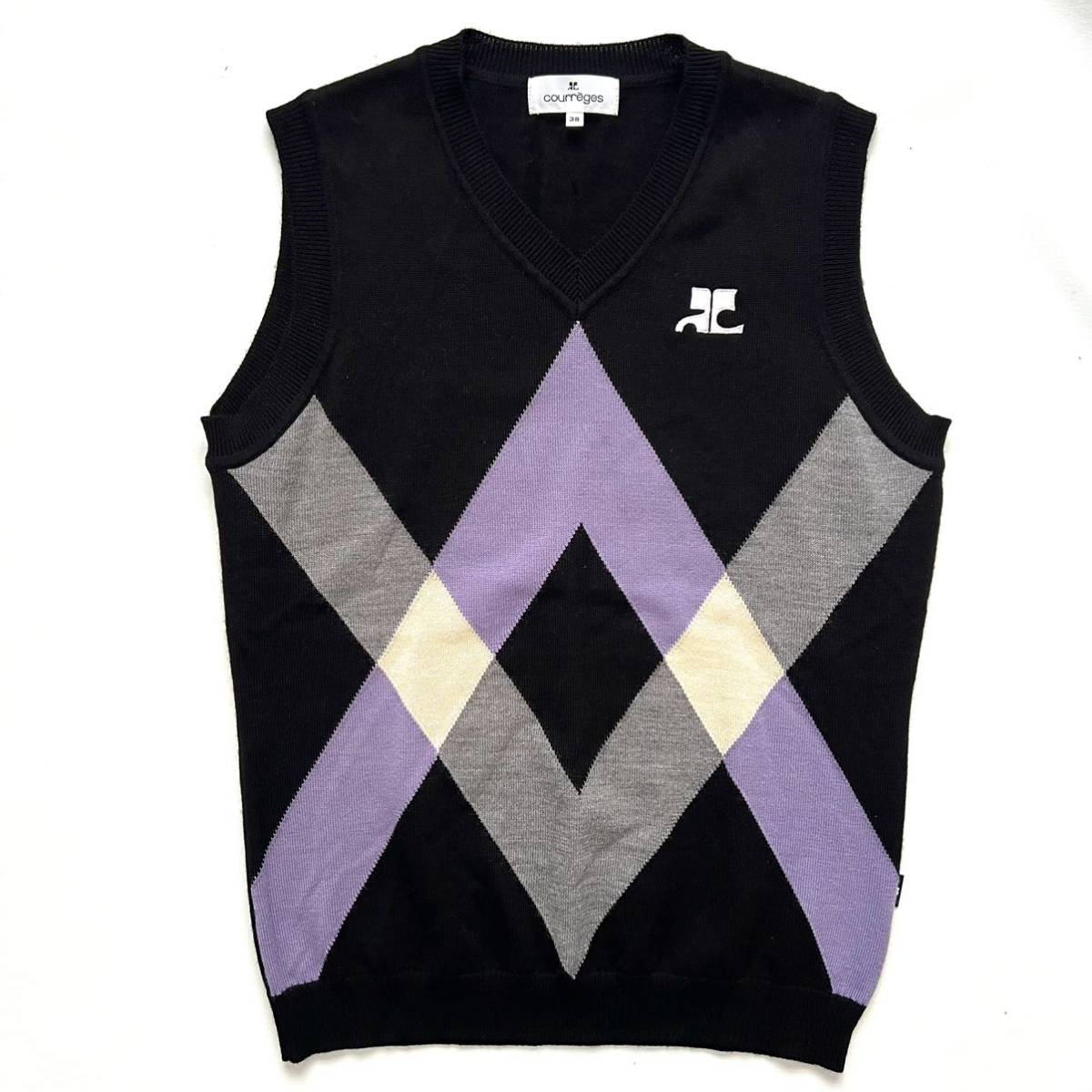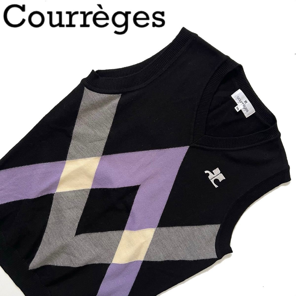《デザイン》ニット ベスト ノースリーブ レディース ロゴ刺繍 アーガイル 柄