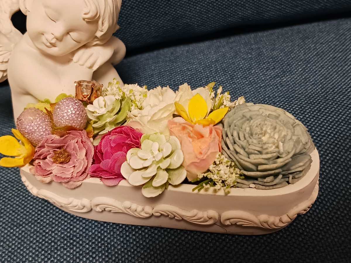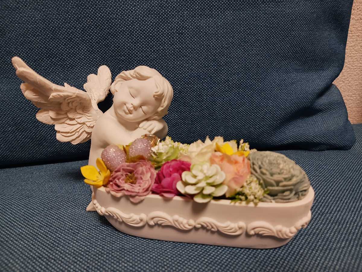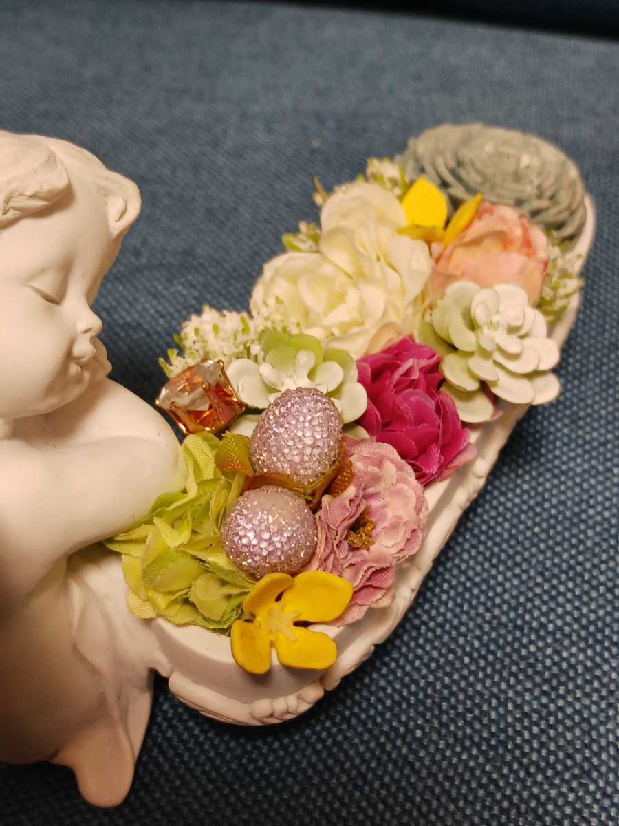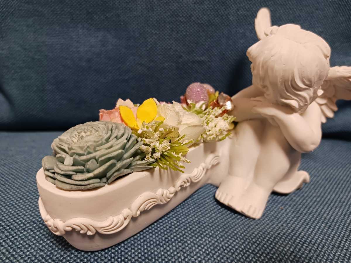 天使 妖精 エンジエル 花 フラワーアンティーク置物です。