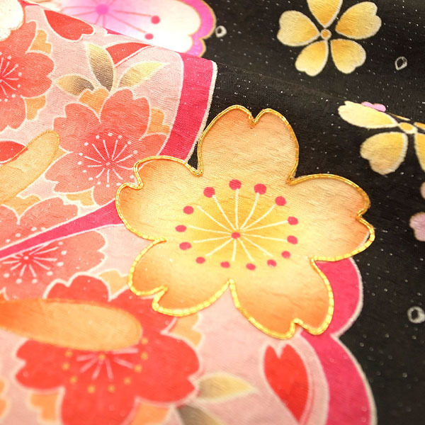 そこに、桜や梅・鹿の子などが豪華で丁寧に染められています。