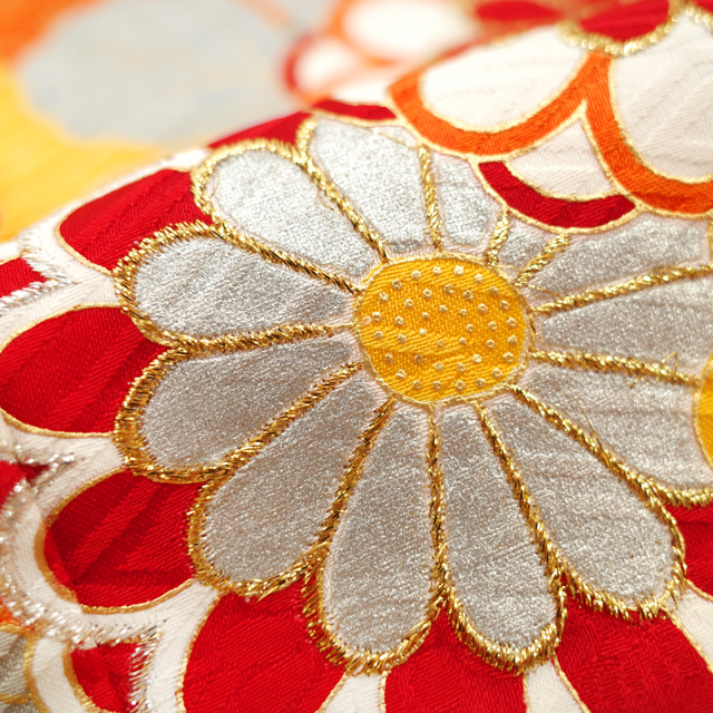 柄行には、上品な煌めきを放つ 金銀彩加工や刺繍も施され細部に渡って細やかな作業が成されたとても手の込んだお品物でございます。