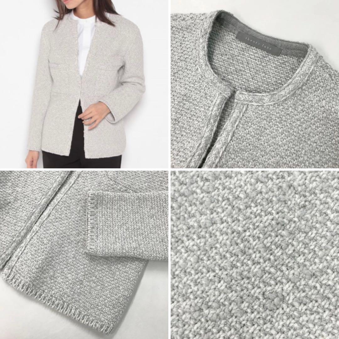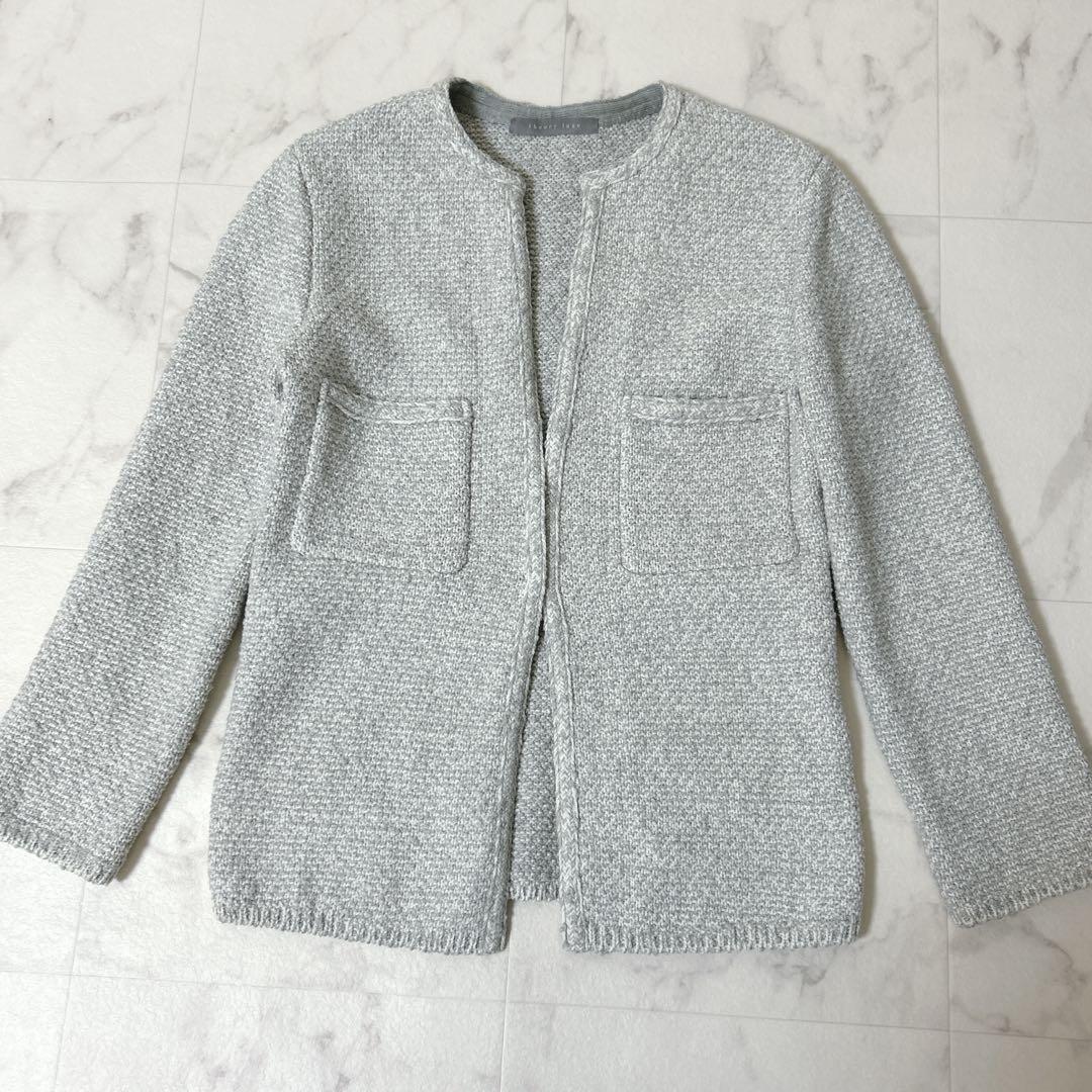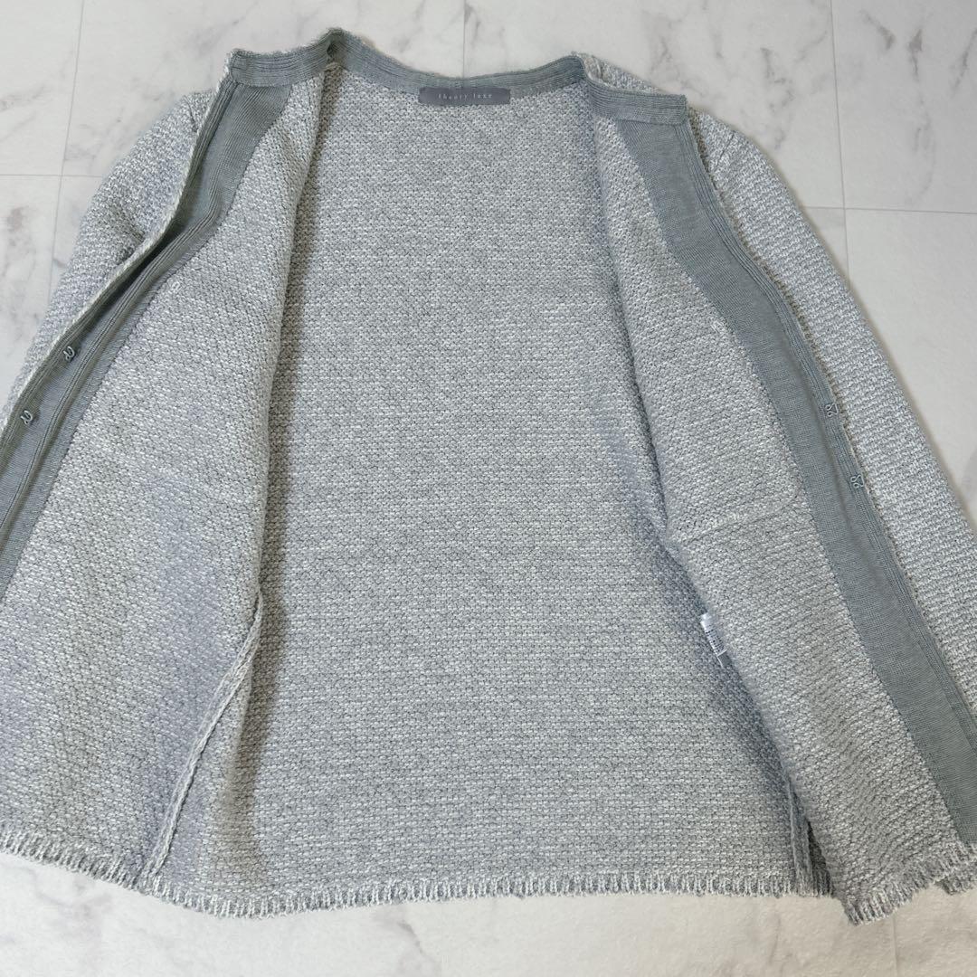 スタイルを一着で華やかに演出するツイーディーなニットカーディガン。ジャケット感覚で羽織れるデザインに仕上げました。カットソーやデニムとカジュアルにも、ブラウスやドレスとドレッシーにも着こなせる汎用性の高いアイテムです。ウール、綿スラブ、ポリエステル糸を組み合わせたツイード調のニット素材を採用しました。凹凸感のある表情豊かな風合いで、こなれた雰囲気を演出。生地のカラーグラデーションがコーディネートに美しく映えます。