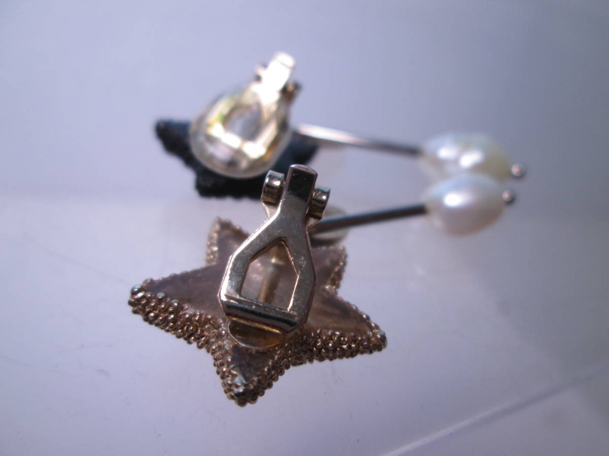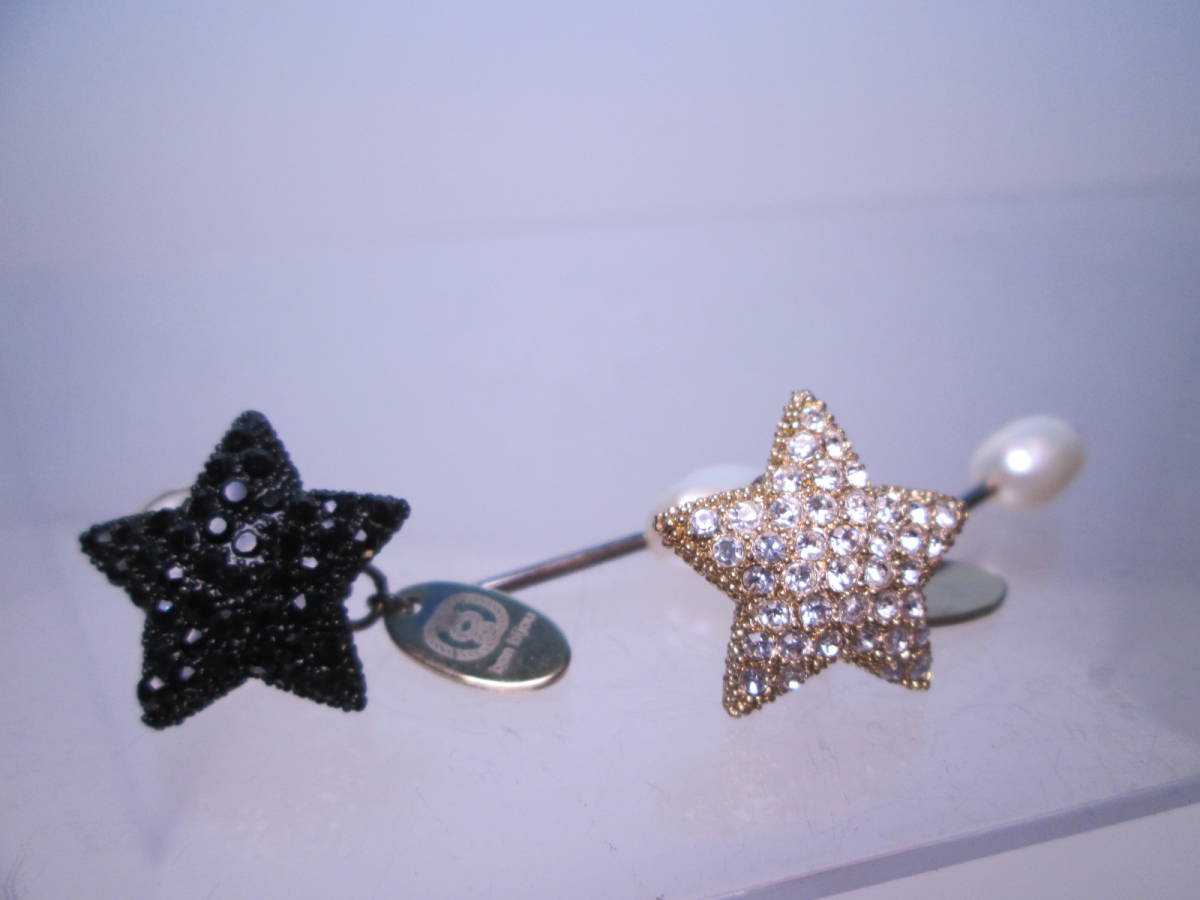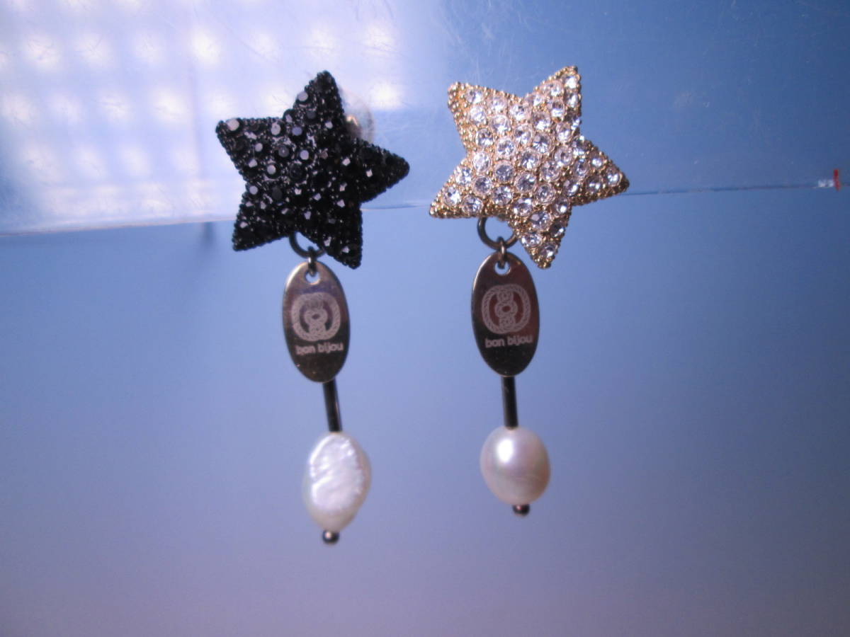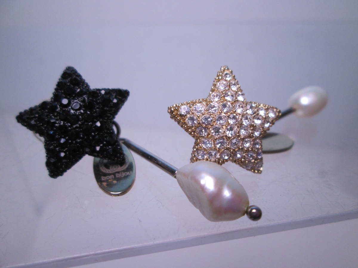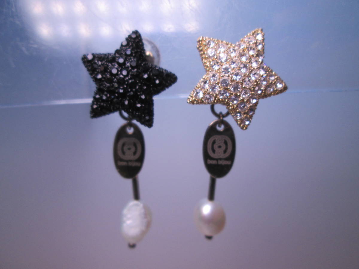 ☆BON BIJOU 淡水パール&ラインストーン ブラック/シルバーカラー 星のイヤリング