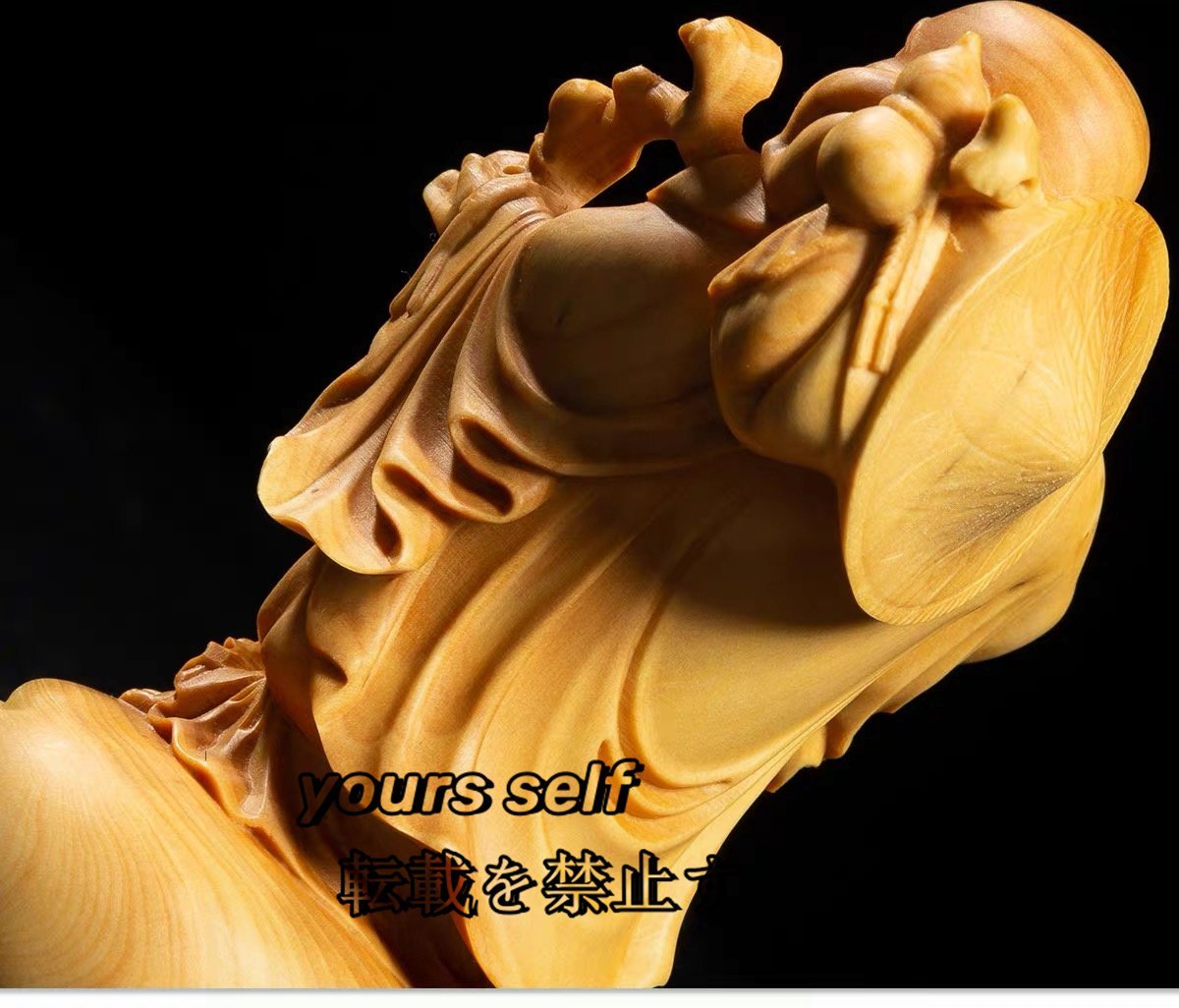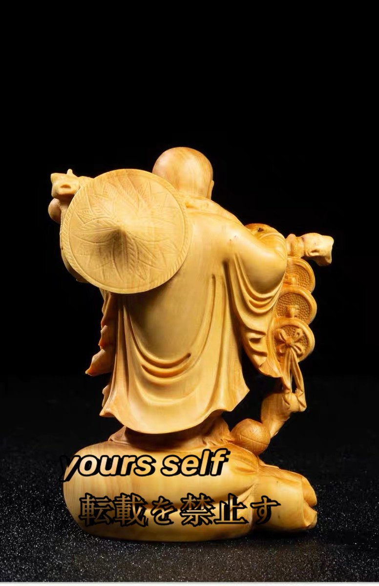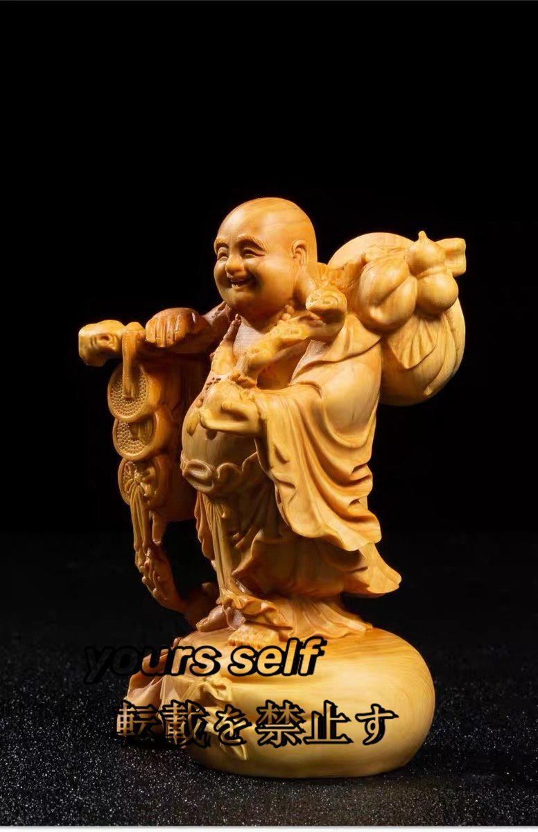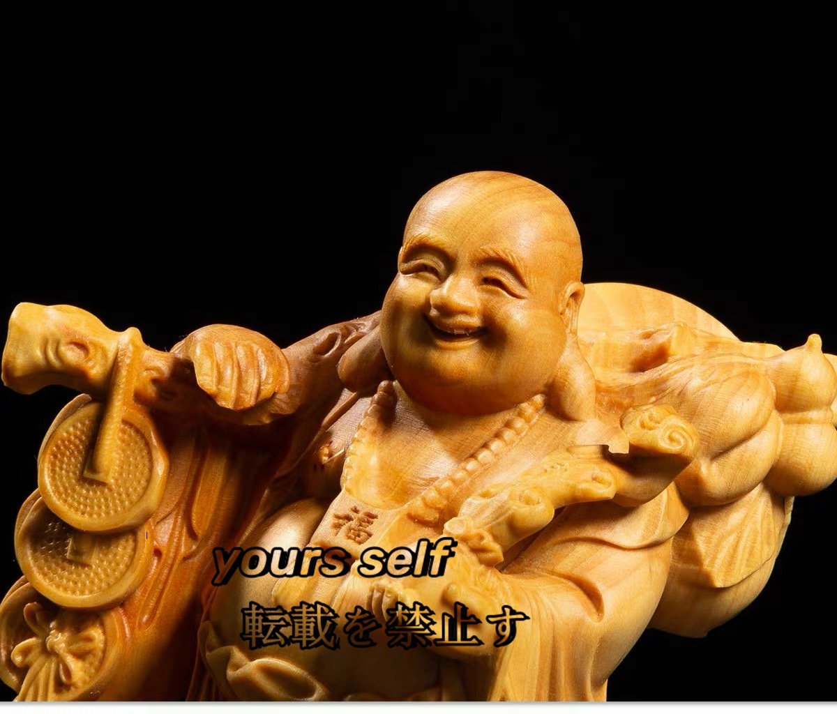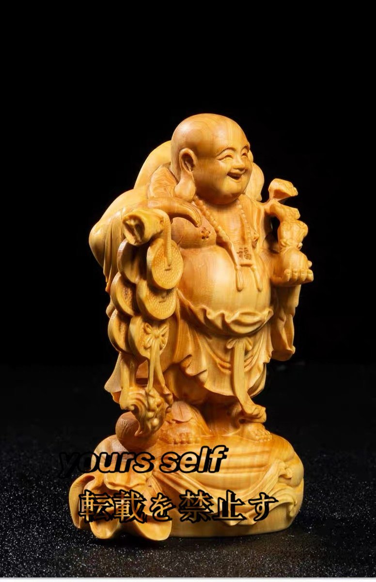 人気新品 極上の木彫 布袋様 七福神 置物 精密彫刻 木彫仏像 仏教工芸品 金運 財運