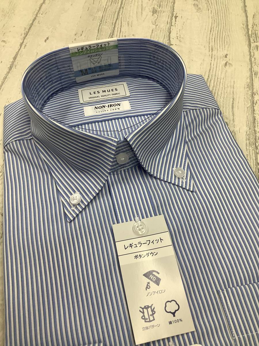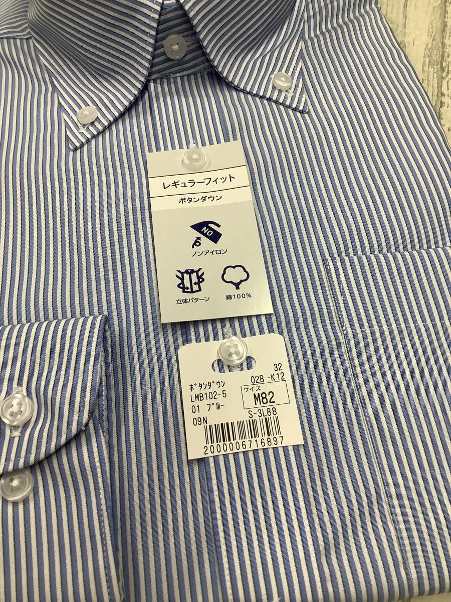 新品未使用 39-82 長袖Mサイズ ★ブルーストライプ生地 ボタンダウン カッターシャツ 定価4,990円 綿100%ドレスシャツ