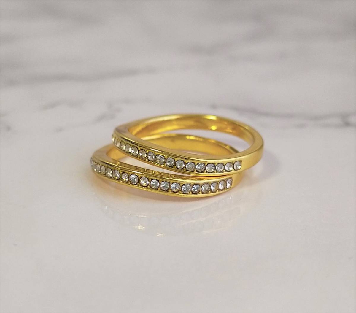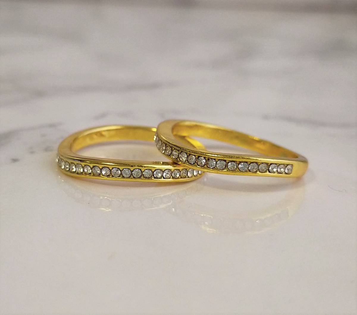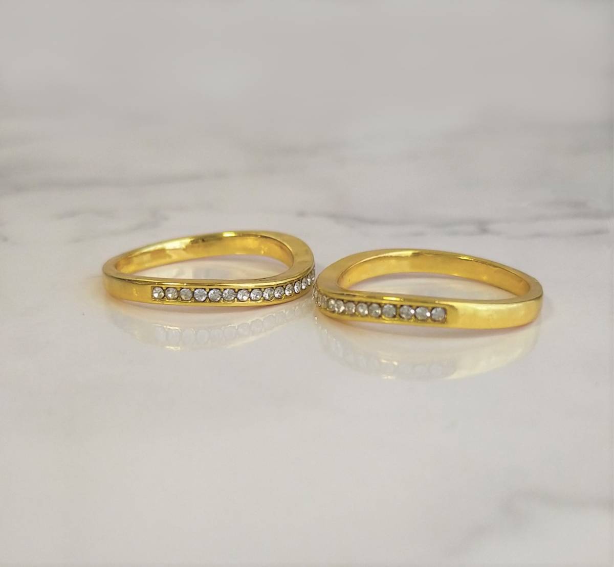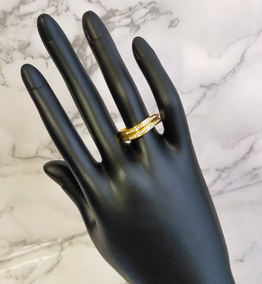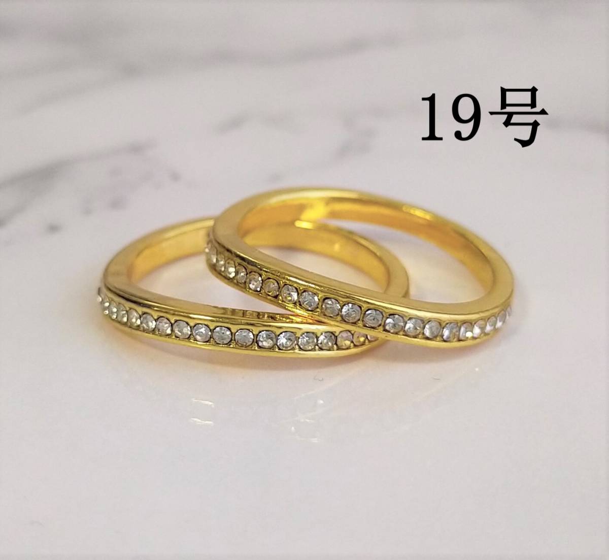 2連セット リング 19号 ゴールド 重ね付け 指輪 リング おしゃれ 細め 2個セット 2点 メンズ ハーフエタニティ