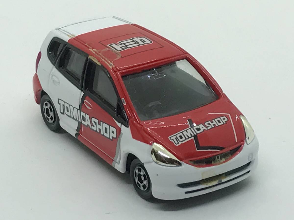 つ4★ トミカ ミニカー ホンダフィットトミカショップレッド×ホワイト2002S=1/59No.100