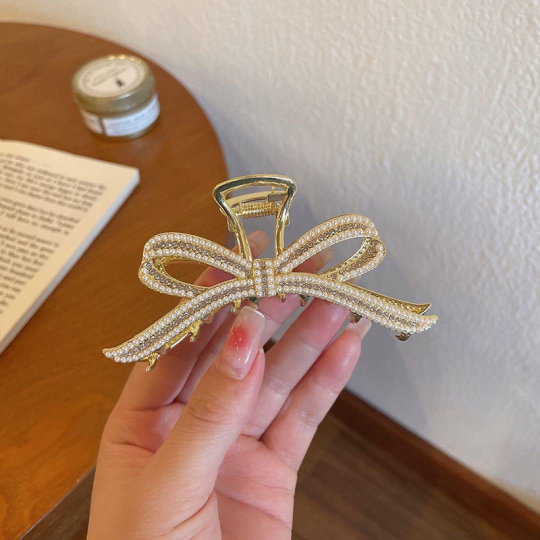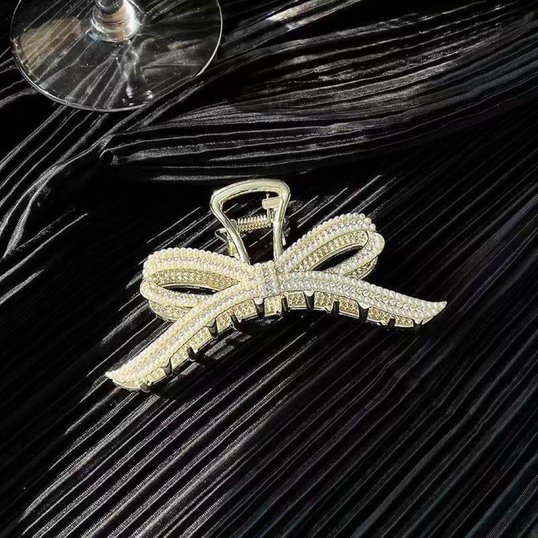 可愛いリボンのバンスクリップ パールクリップ 髪飾り クリップ