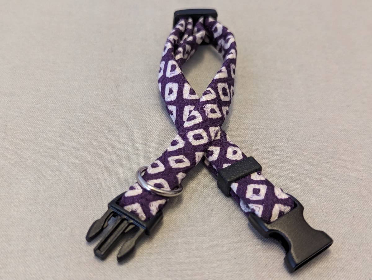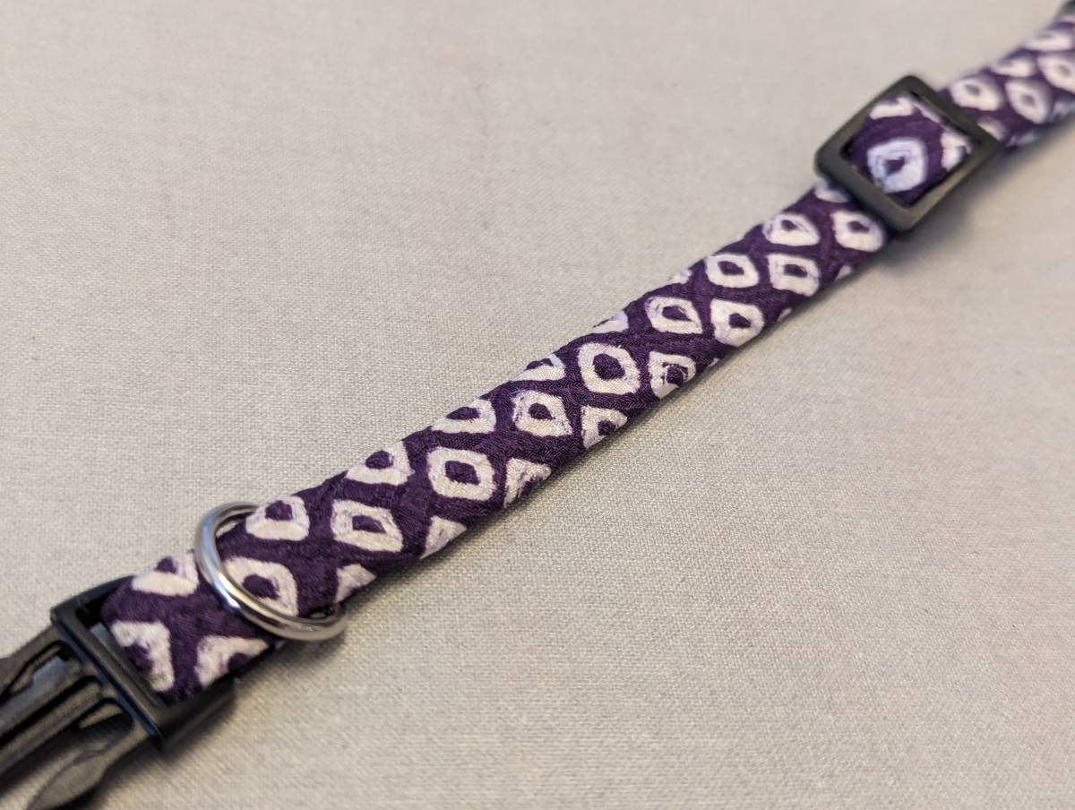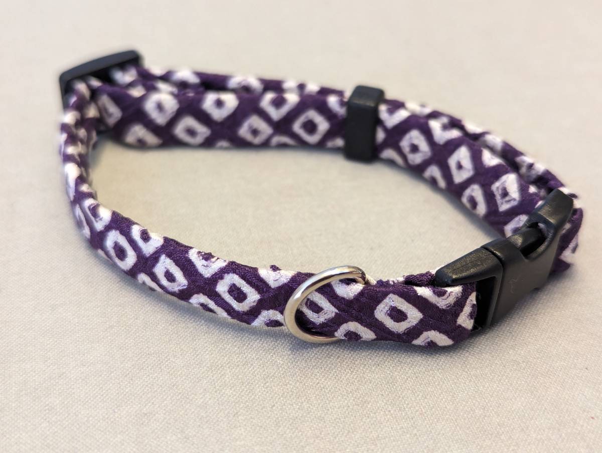 ★手作り京都作家物 猫 首輪 和柄★正絹深紫地疋田絞り★ハンドメイド (セーフティタイプ) 即決700円