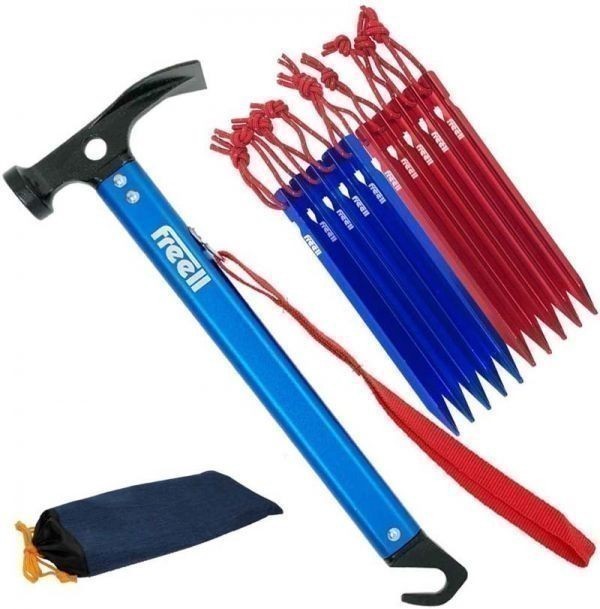 【 送料無料 】Freell◆ ペグ ハンマー セット 軽量 多機能 高炭素鋼ヘッド 特殊アルマイト加工 収納袋付き∧