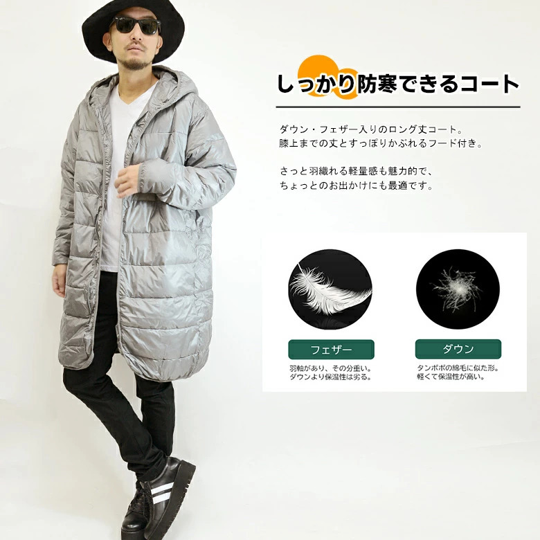 【閉店セール】ロング丈ダウン コート ダウン ジャケット 38863 メンズ ロングダウン 新品 グレー L