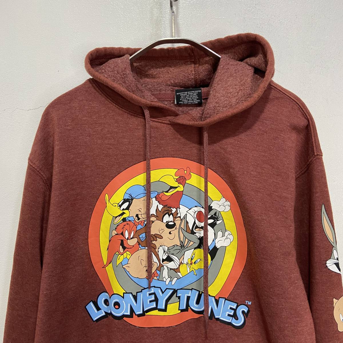 ☆LOONEY TUNES☆ルーニーテューンズ☆キャラクタープリントスウェットパーカー☆スリーブプリント☆エンジ☆M☆