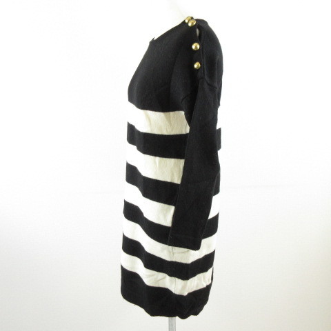 イエナ IENA ニットワンピース ミニ 長袖 ボーダー オフホワイト 黒 *A313 レディース