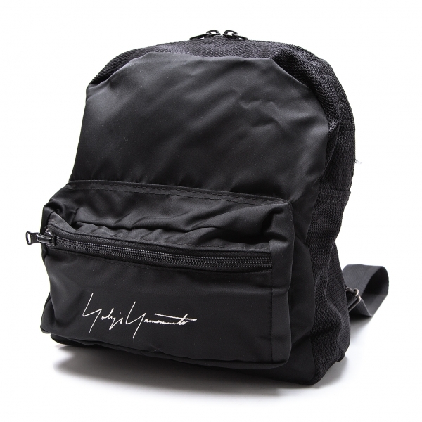 ヨウジヤマモトYohji Yamamoto '96 SUPER POSITION OSAKA メッシュ切替ロゴプリントミニリュックサック 黒 |