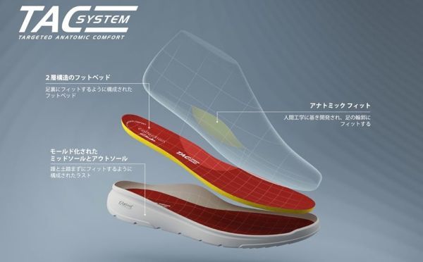 [TAC / ターゲットアナトミック コンフォート]人間工学に基づいて開発された2層構造のフットベッド(中敷き)と、踵とアーチ(土踏まず)にフィットするように構成されたモールドソールによるクラークス独自のコンフォート機能。